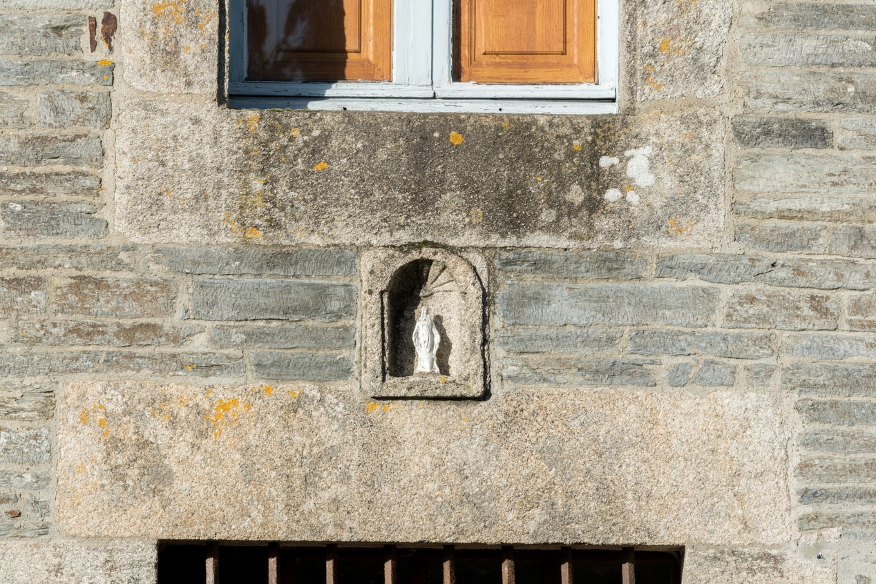 Logis. Façade antérieure sud. Détail de la niche à Vierge au-dessus de la porteImmatriculation