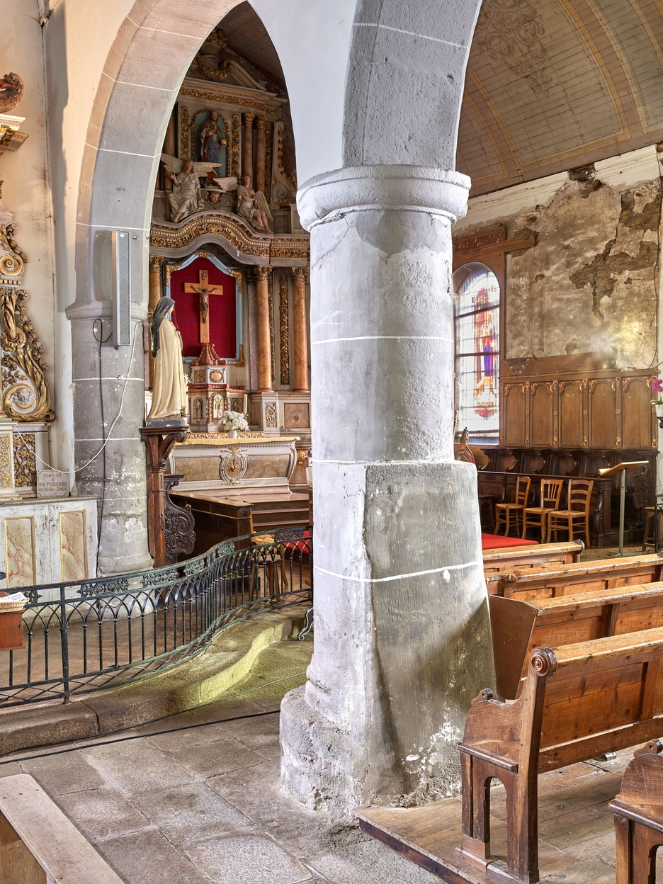 Pilier biseauté qui permettait de recevoir la chaire à prêcherImmatriculation