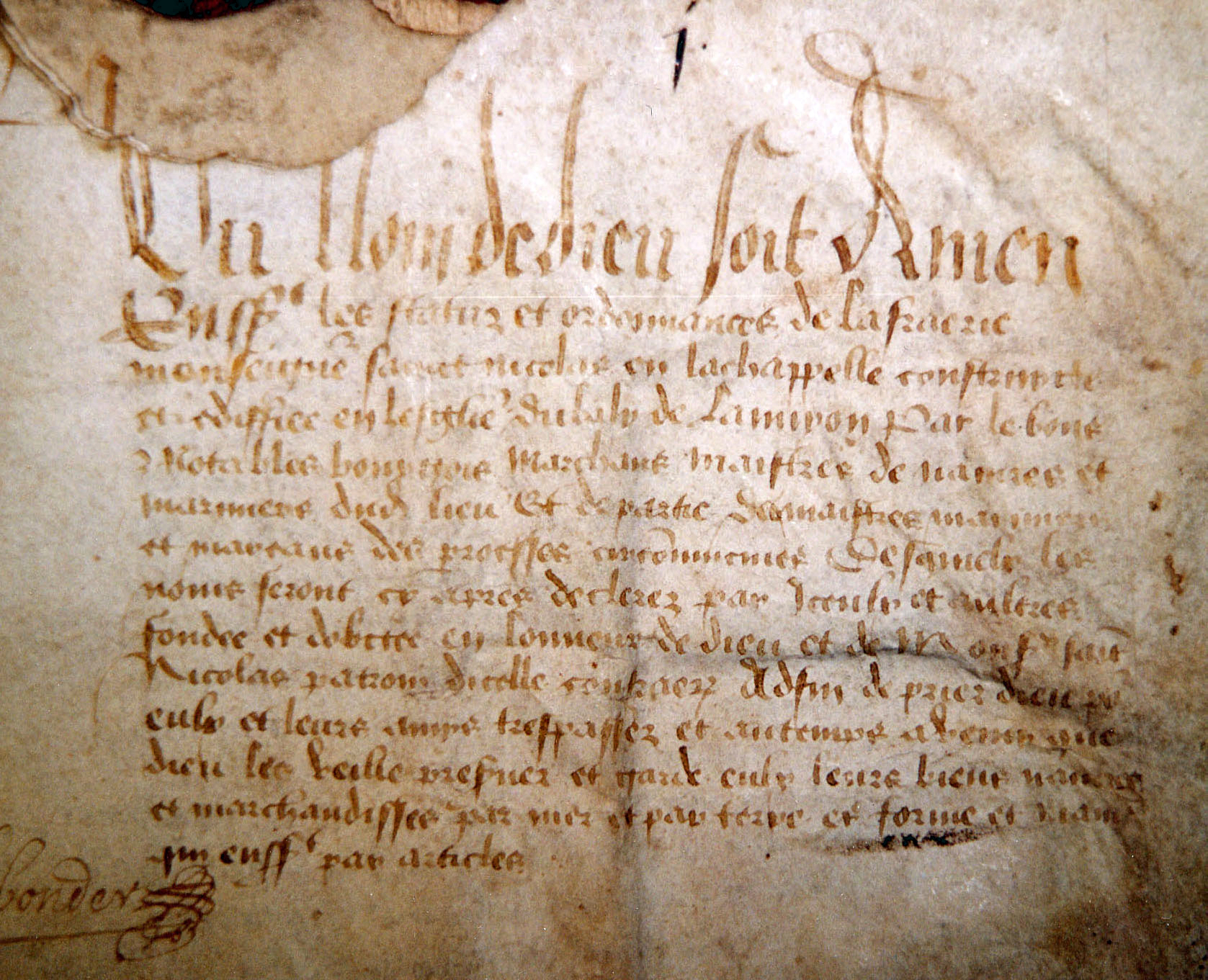 Médiathèque de Lannion. Statuts de la confrérie Saint-Nicolas des Mariniers. 1484.