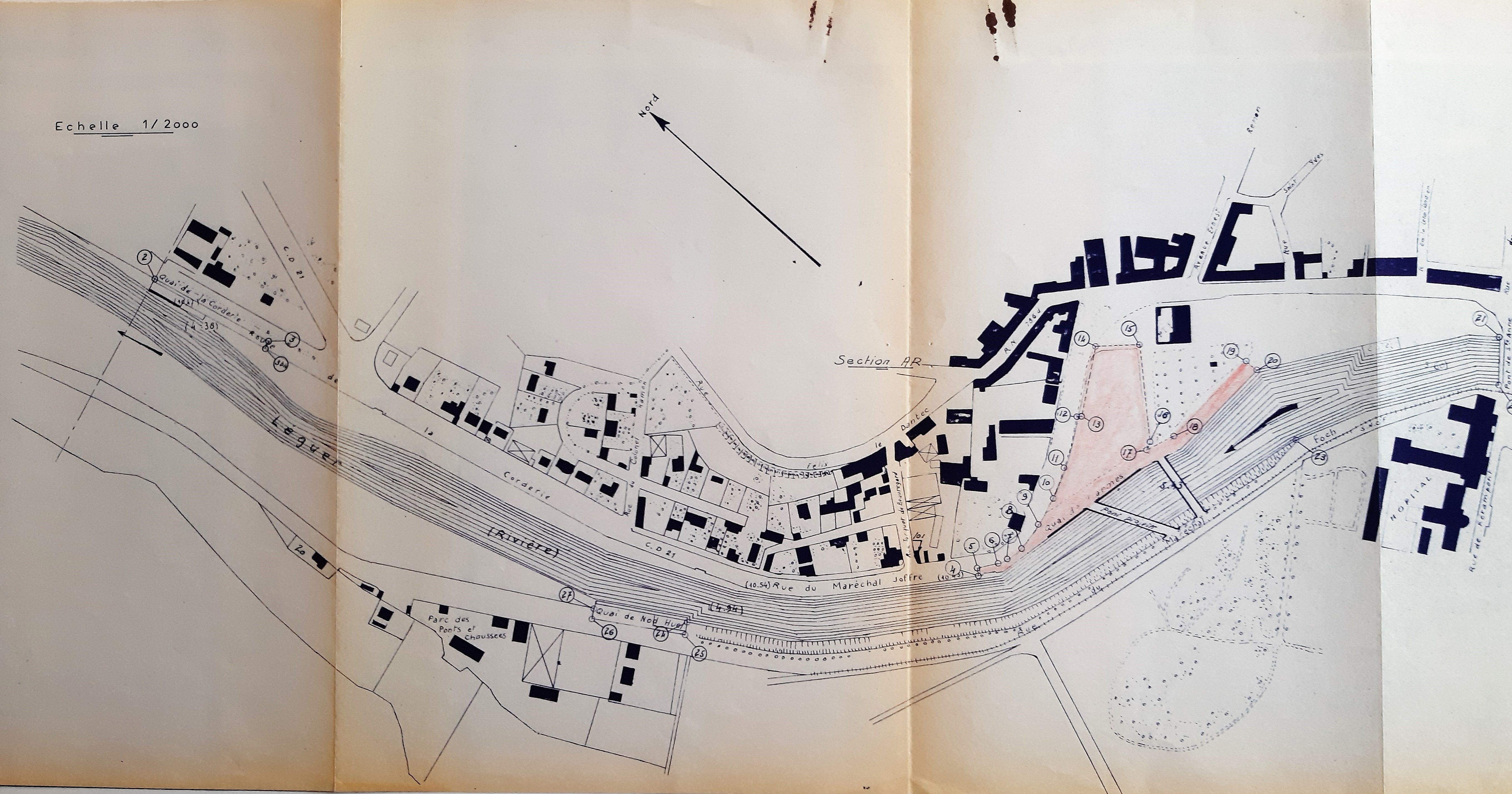 Le quai Joffre et le quai de la Corderie sur le plan du port de Lannion daté du 29-05-1973Immatriculation
