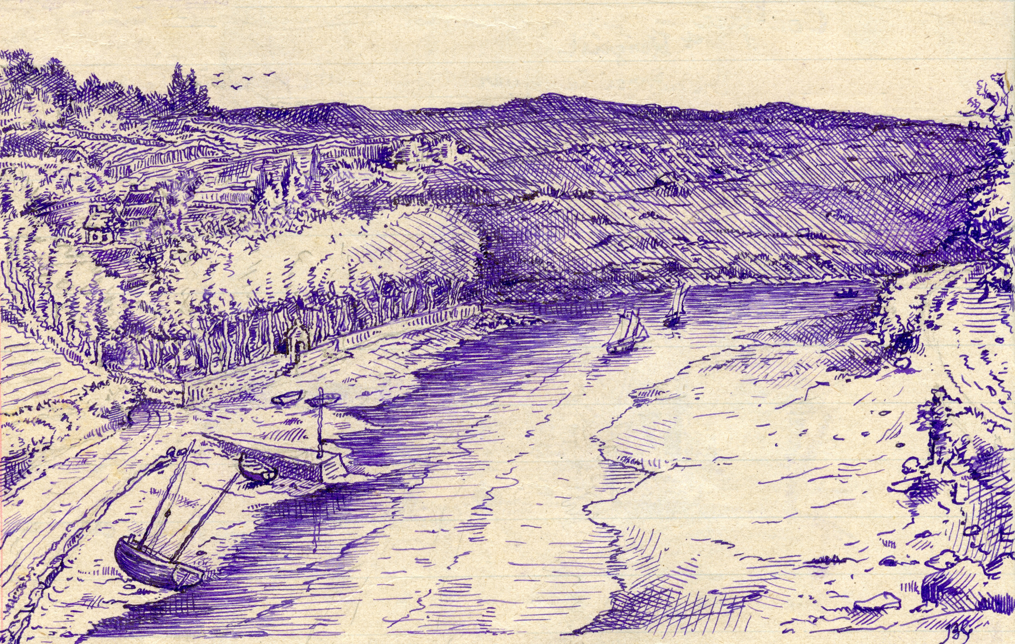La fontaine Saint-Ivy de la Rive par Charles Barré vers 1900. A marée haute, les bateaux pouvaient s'approvisionner en eau douce à la fontaineImmatriculation