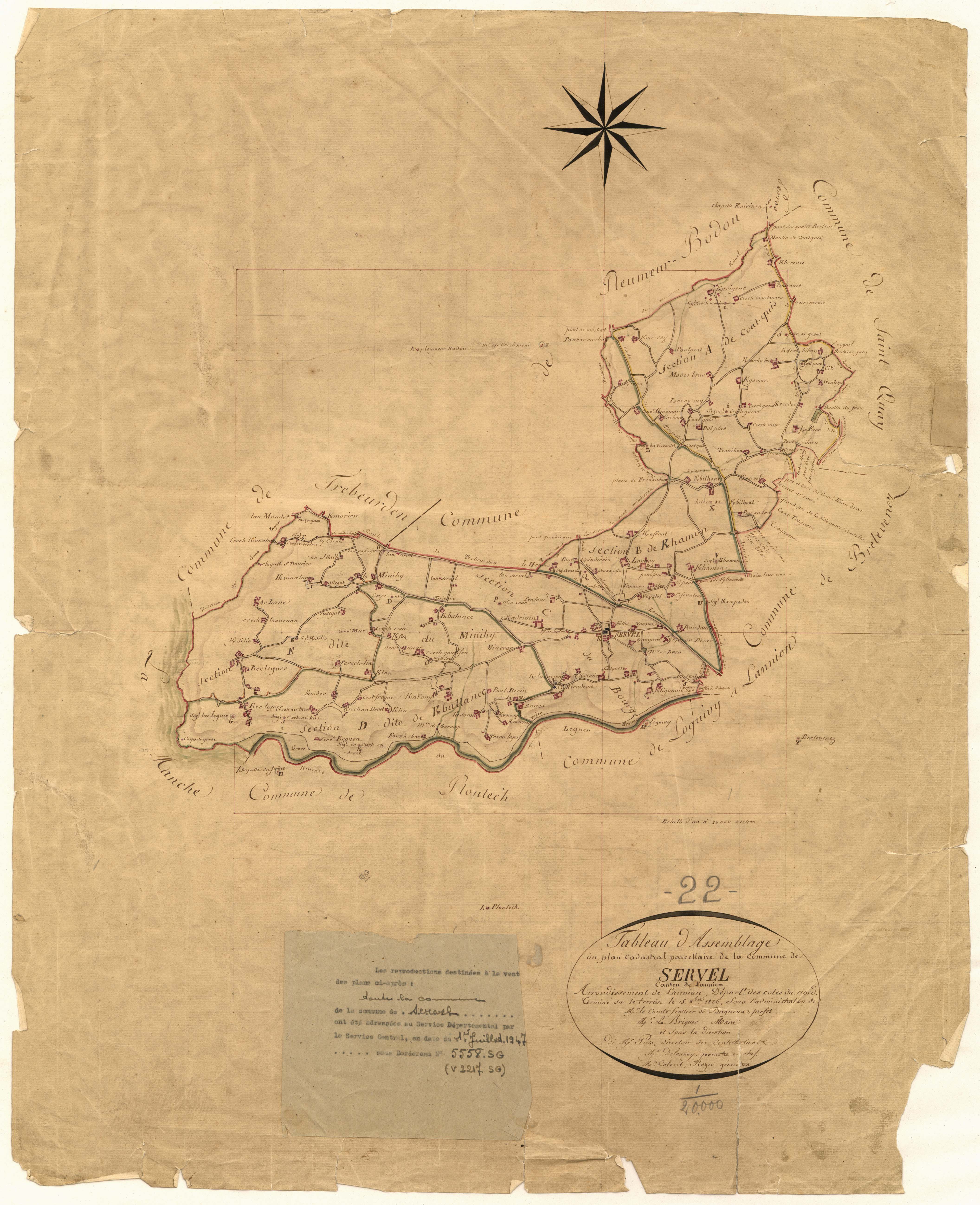 Tableau d'assemblage du cadastre ancien de 1826 de ServelImmatriculation