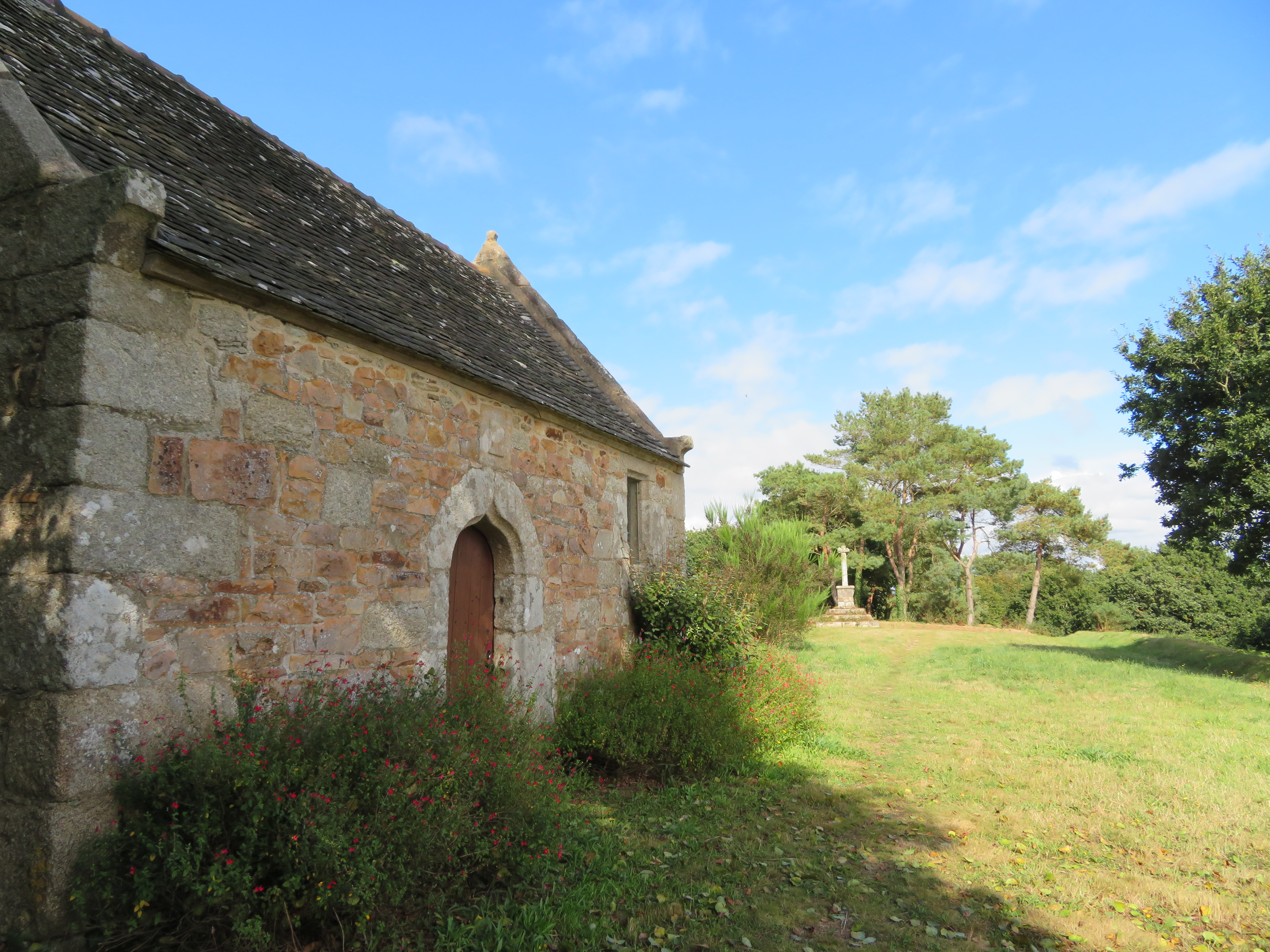 Chapelle Saint-Nicodème, Lannion : vue générale de la chapelle et de la croix dans son axeImmatriculation