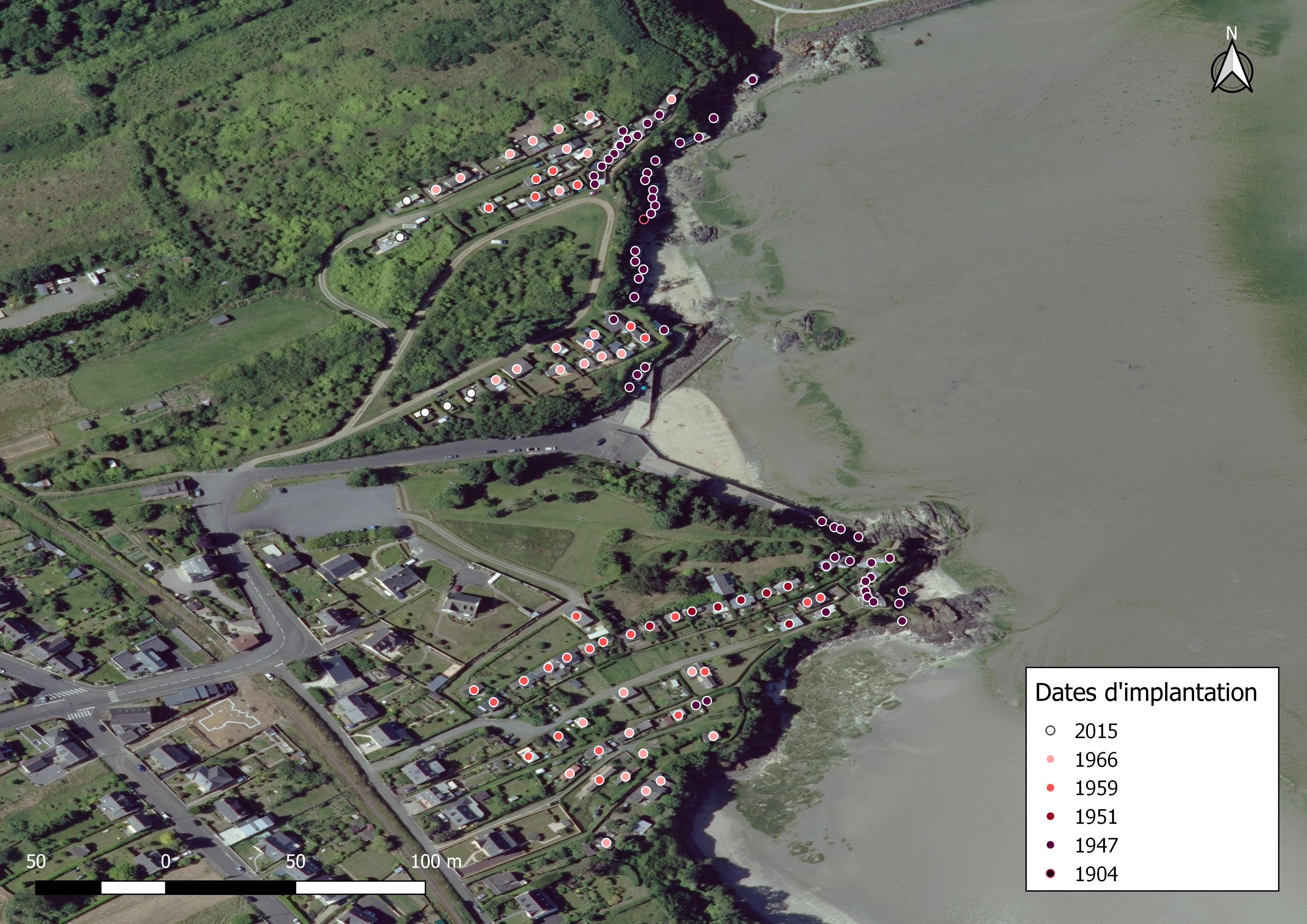 Carte de répartition des cabanons par date d'implantation d'après les données de l'IGN.Immatriculation