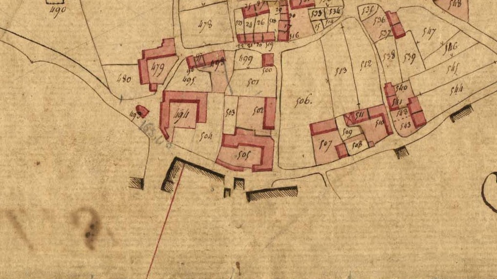 Le bourg en 1828. Extrait du cadastre ancien, section D1 (série 3 P 335, Archives départementales des Côtes-d'Armor)Immatriculation