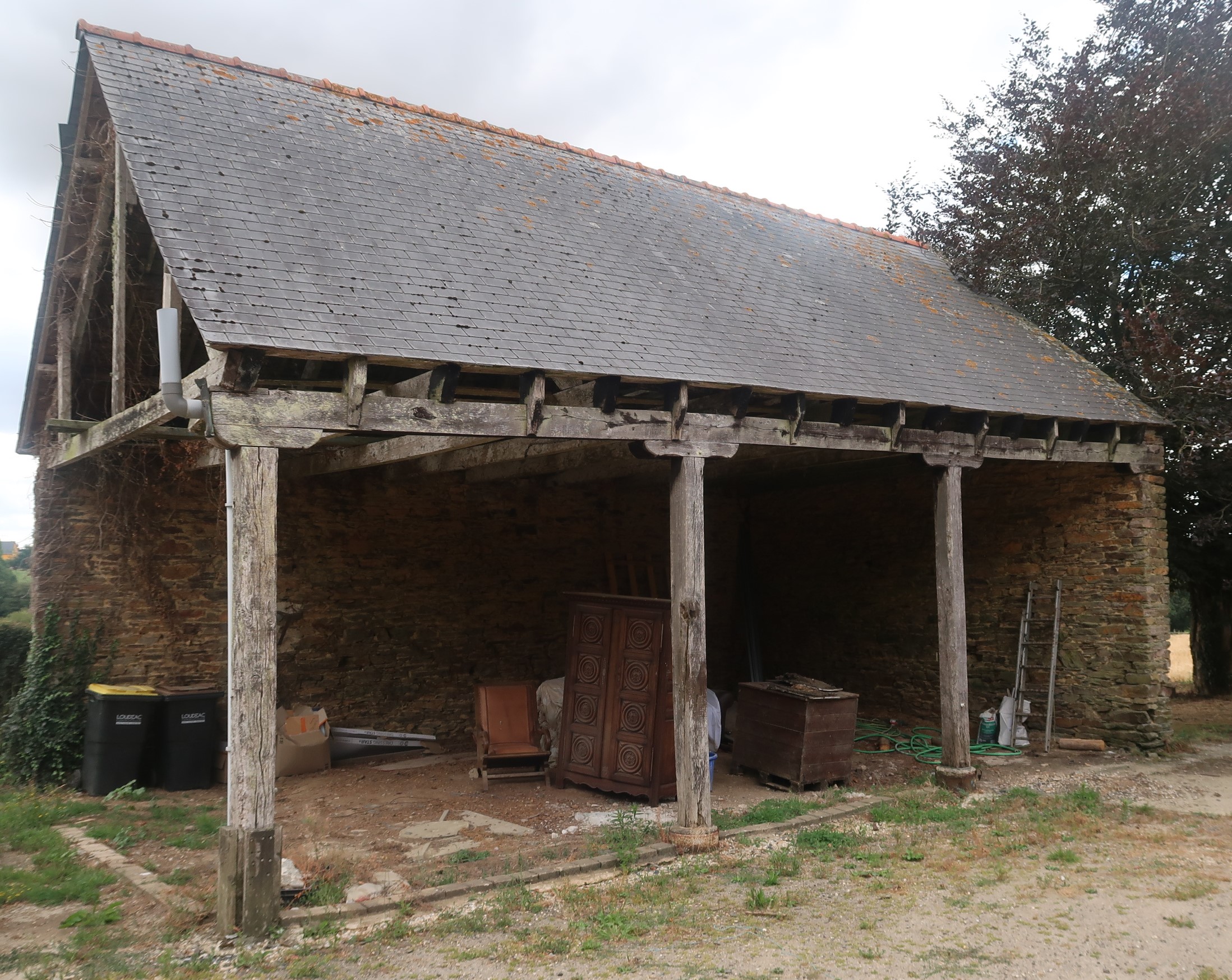 Remise ouverte sur pilier de bois. Vue généraleImmatriculation