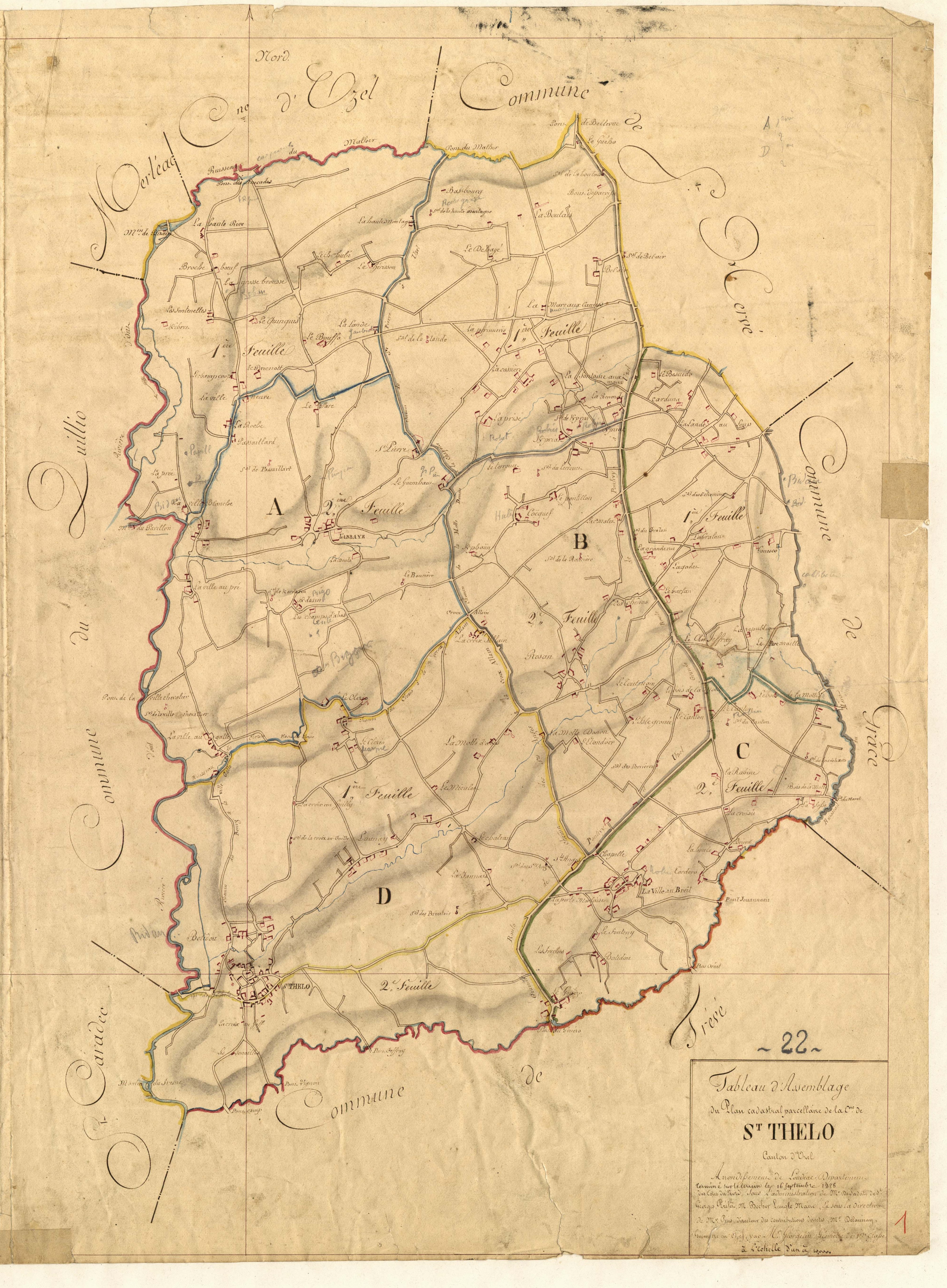 Commune de Saint-Thélo. Tableau d'assemblage du cadastre de 1828 (série 3 P 335, Archives départementales des Côtes-d'Armor)Immatriculation