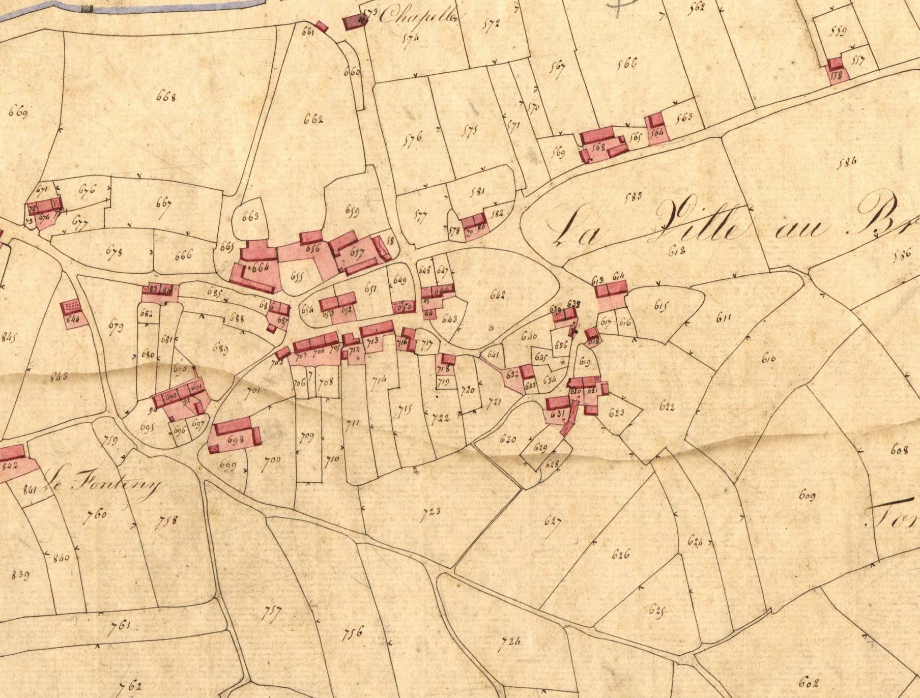 La Ville au Breil en 1828. Extrait du cadastre ancien, section C (série 3 P 335, Archives départementales des Côtes-d'Armor)Immatriculation