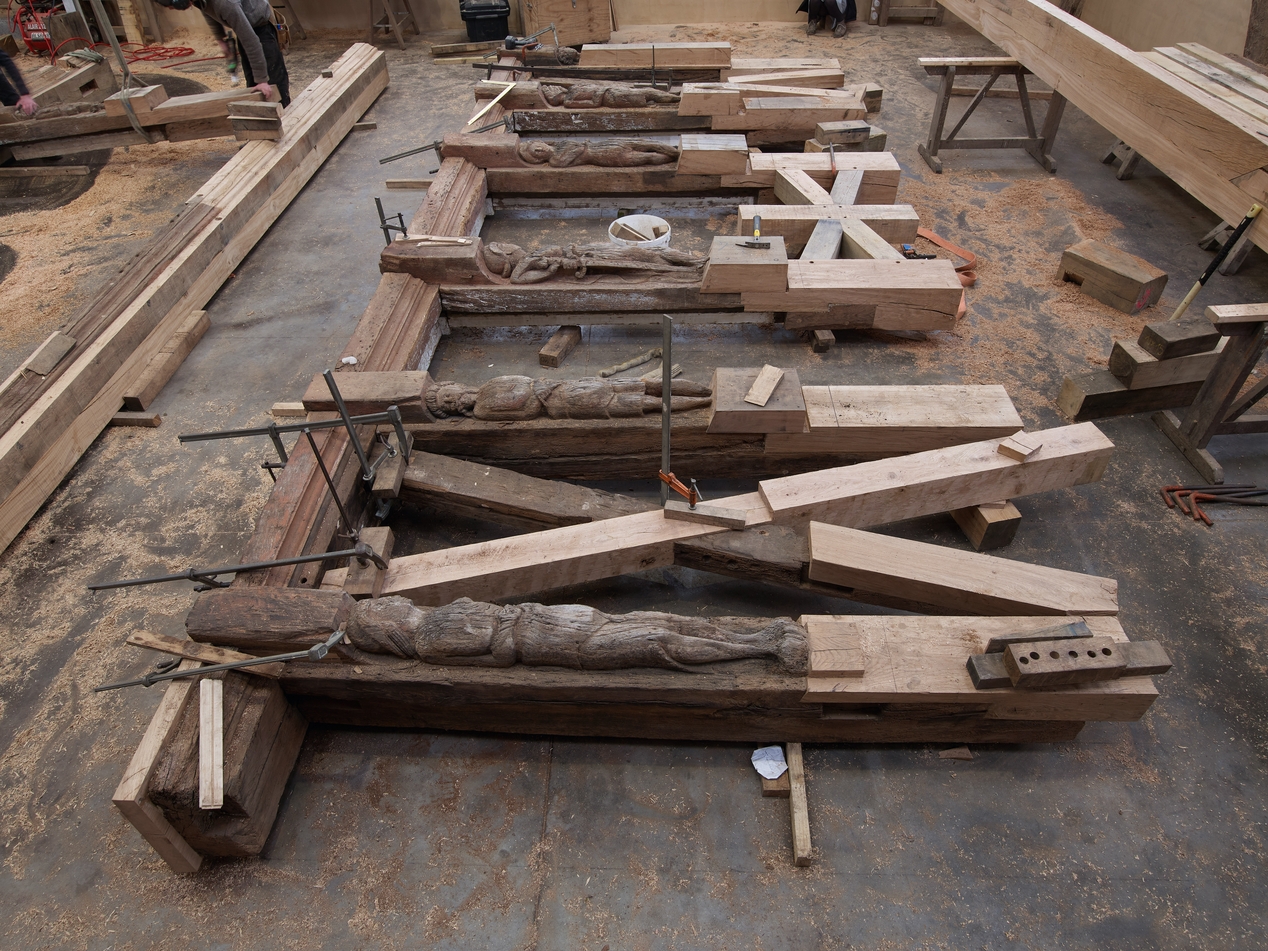 Les personnages sculptés du premier étage se regardent deux par deux.Immatriculation