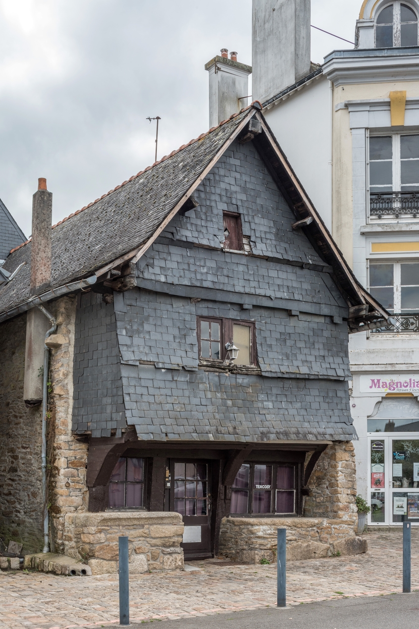 La façade d'origine est couverte d'un essentage en ardoises qui cache l'ordonnancement du pan de bois.Immatriculation