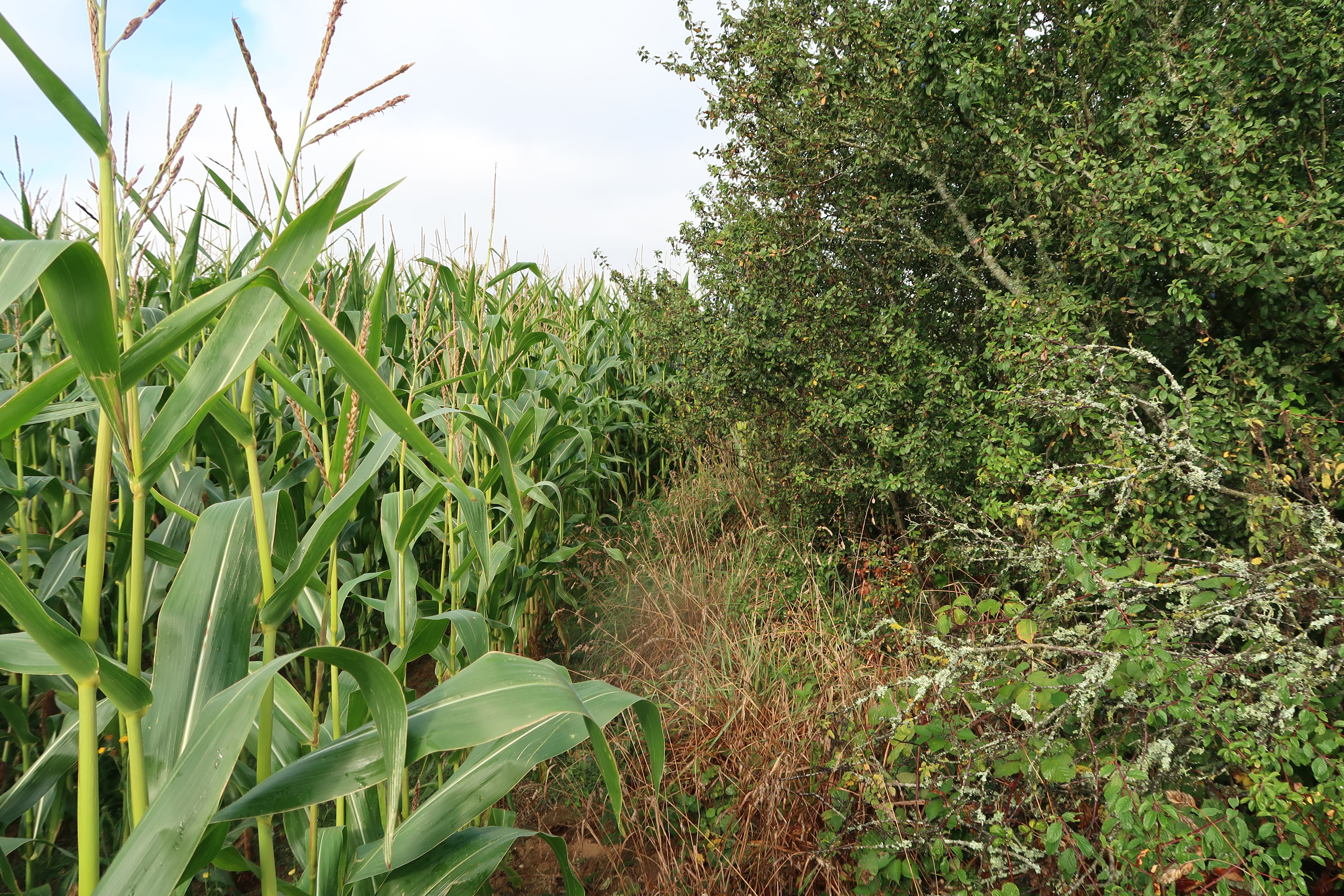 Vue de situation au milieu d'un champ de maïs (état en 2021)Immatriculation