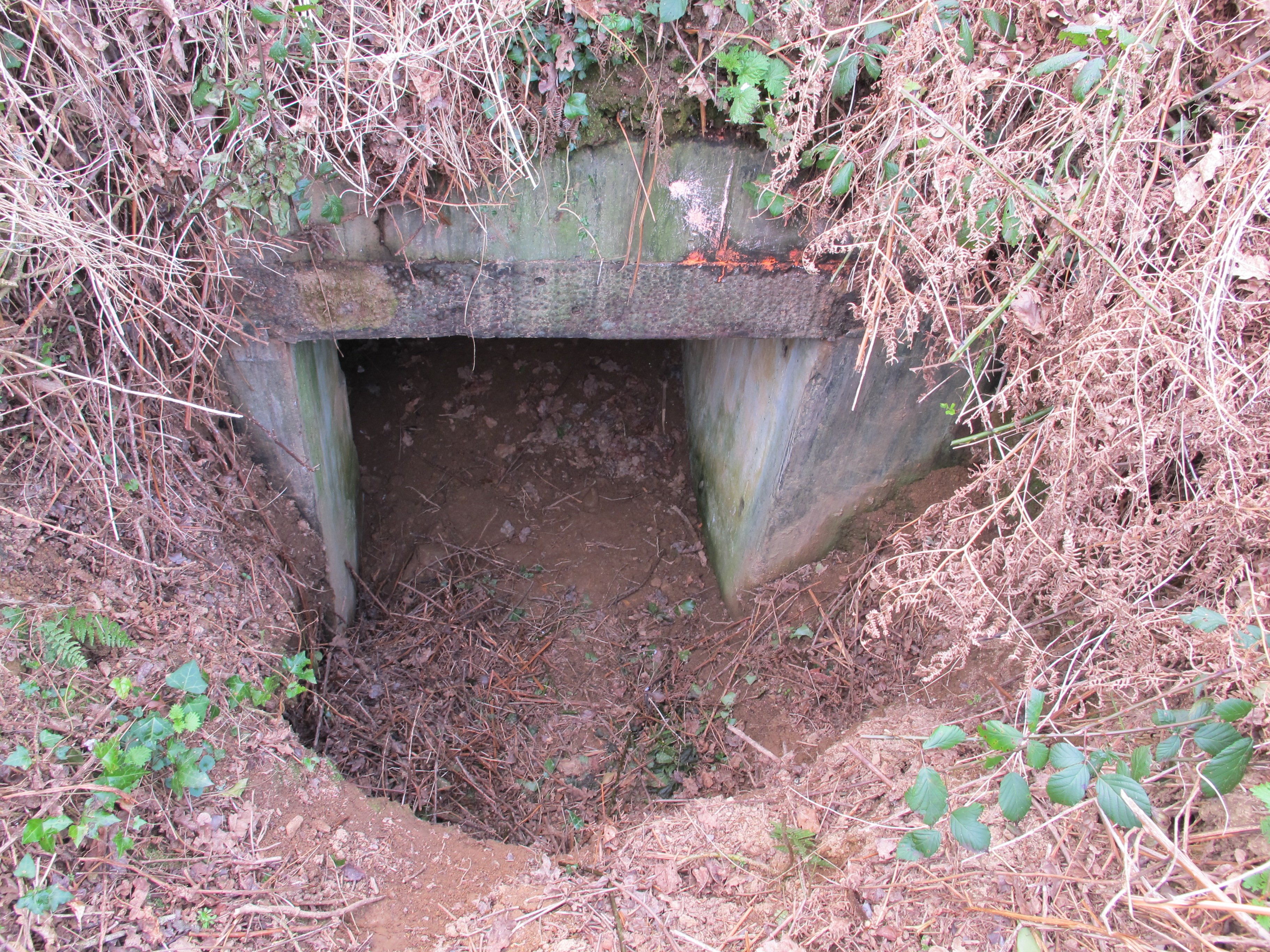 Vue de l'entrée est en partie remblayée et envahie par la végétation (état en 2013)Immatriculation