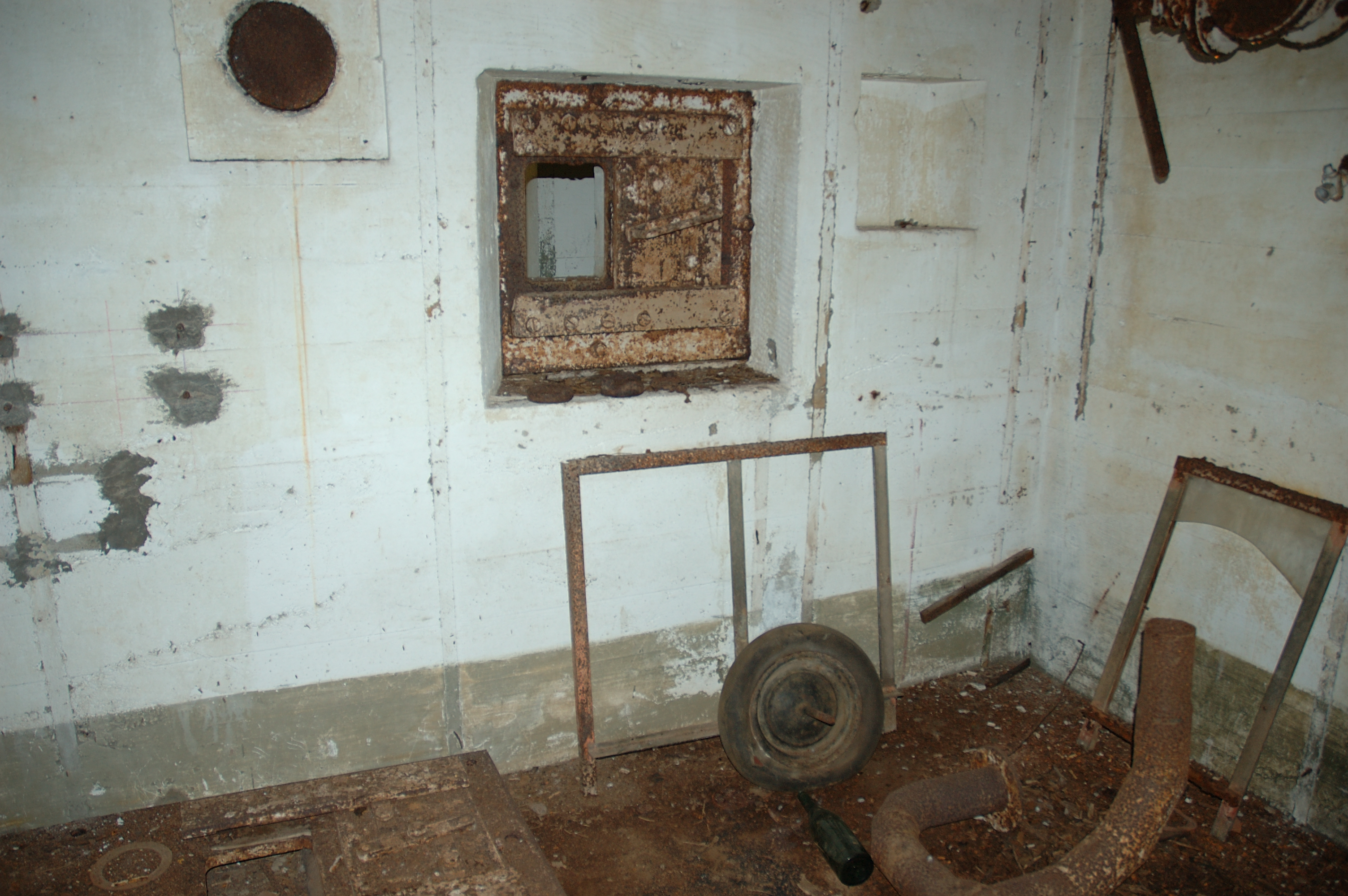 Vue de la chambre de troupe de gauche : créneau blindé de type 48P8 (état en 2005)Immatriculation