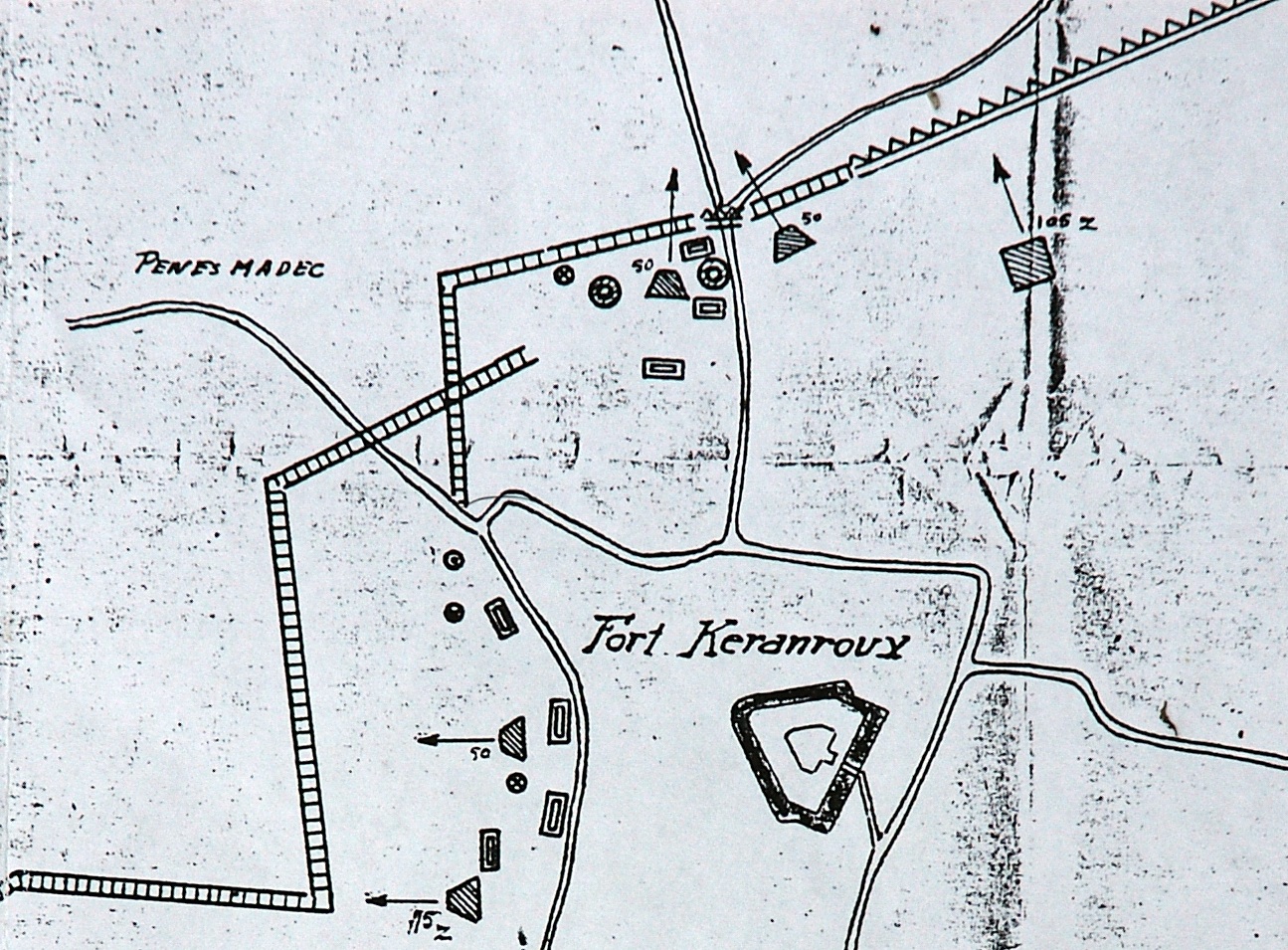 Ensemble fortifié (B 47), Keranroux - Menguen, sur la crête à l'ouest de la route de Guilers (actuelle rue de Kerléo) (Brest),