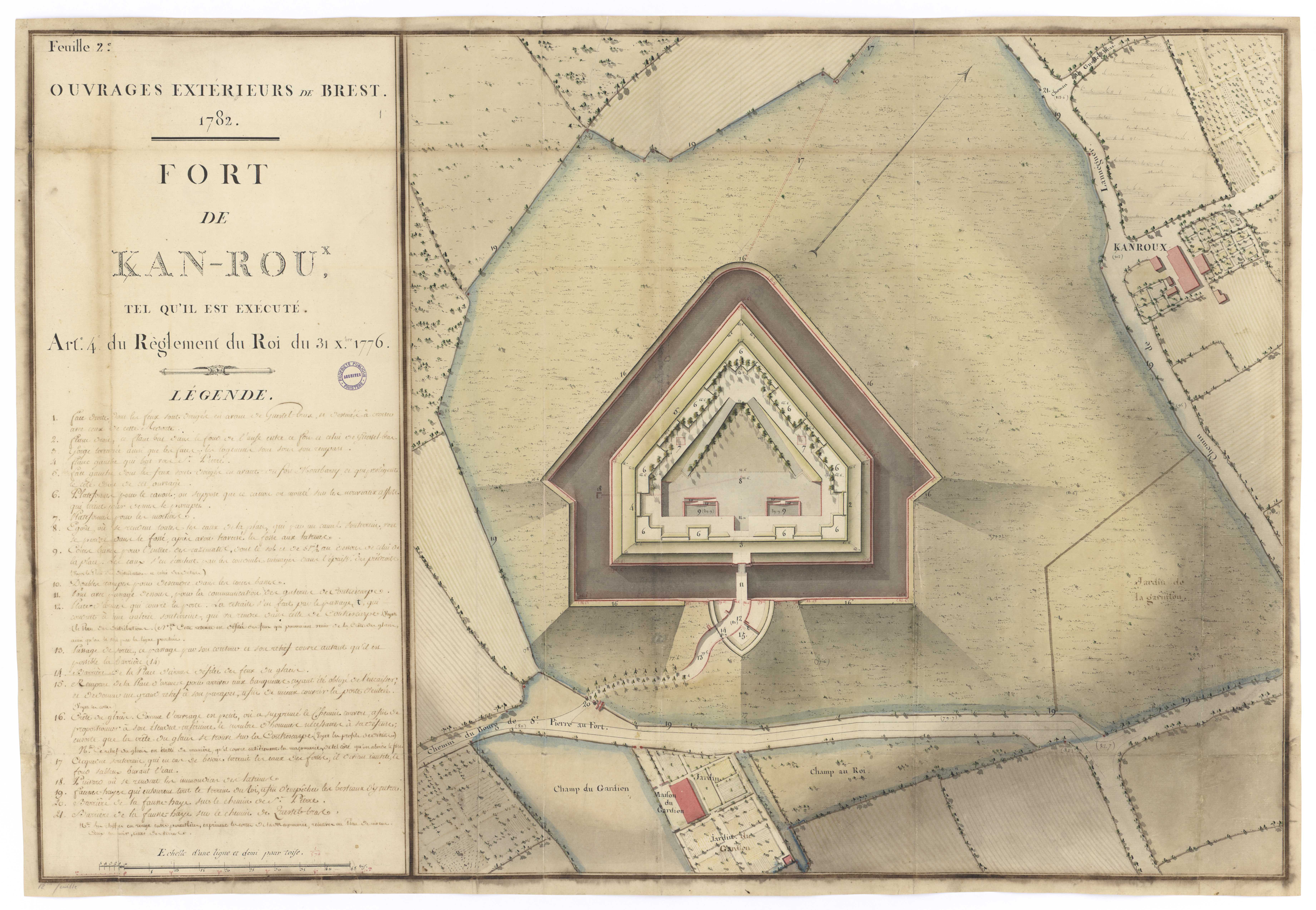 Plan du Fort de Keranroux, "tel qu'il est exécuté", 1782 (Archives départementales du Finistère, 9Fi1)Immatriculation