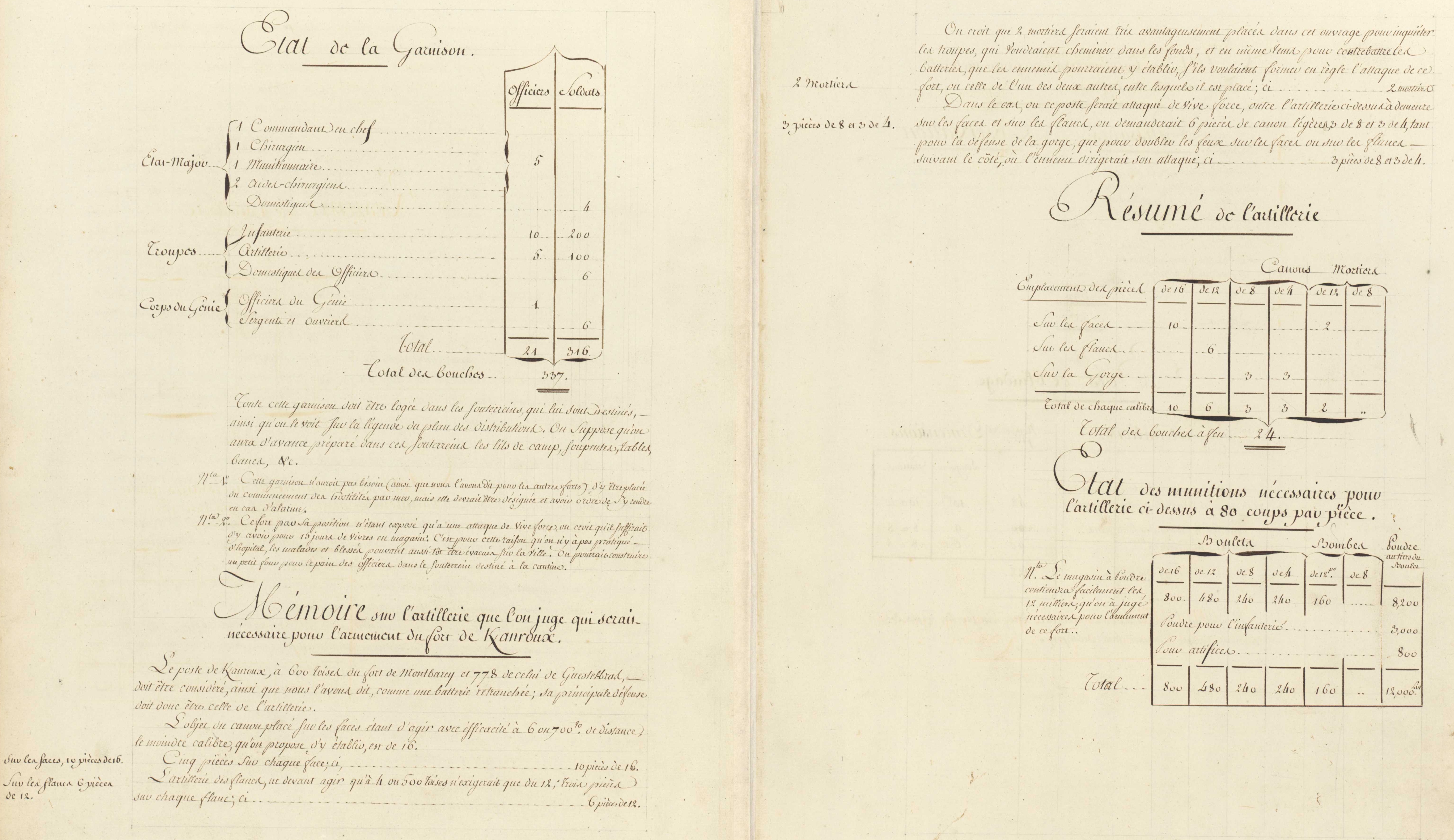 Extrait de l'Atlas des ouvrages extérieurs de Brest dont la construction a été ordonnée par le Règlement du Roi du 31e Xbre 1776 : mémoires, 1781-1784 : état de la garnison et mémoire sur l'artillerie du Fort de Keranroux (Archives départementales du Finistère, 9Fi1)Immatriculation