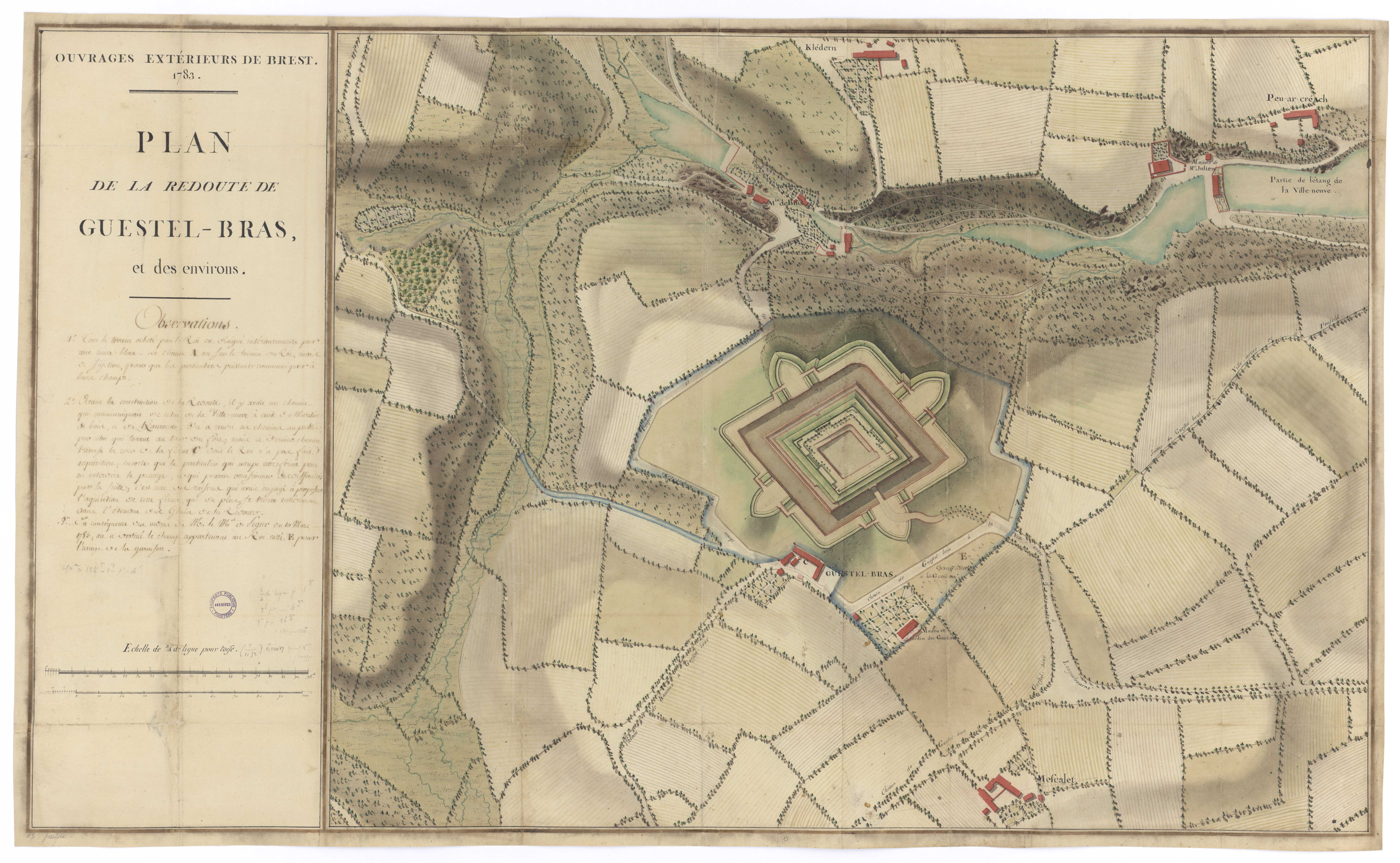Plan de la Redoute de Guestel-Braz et des environs, 1783 (Archives départementales du Finistère, 9Fi1)Immatriculation