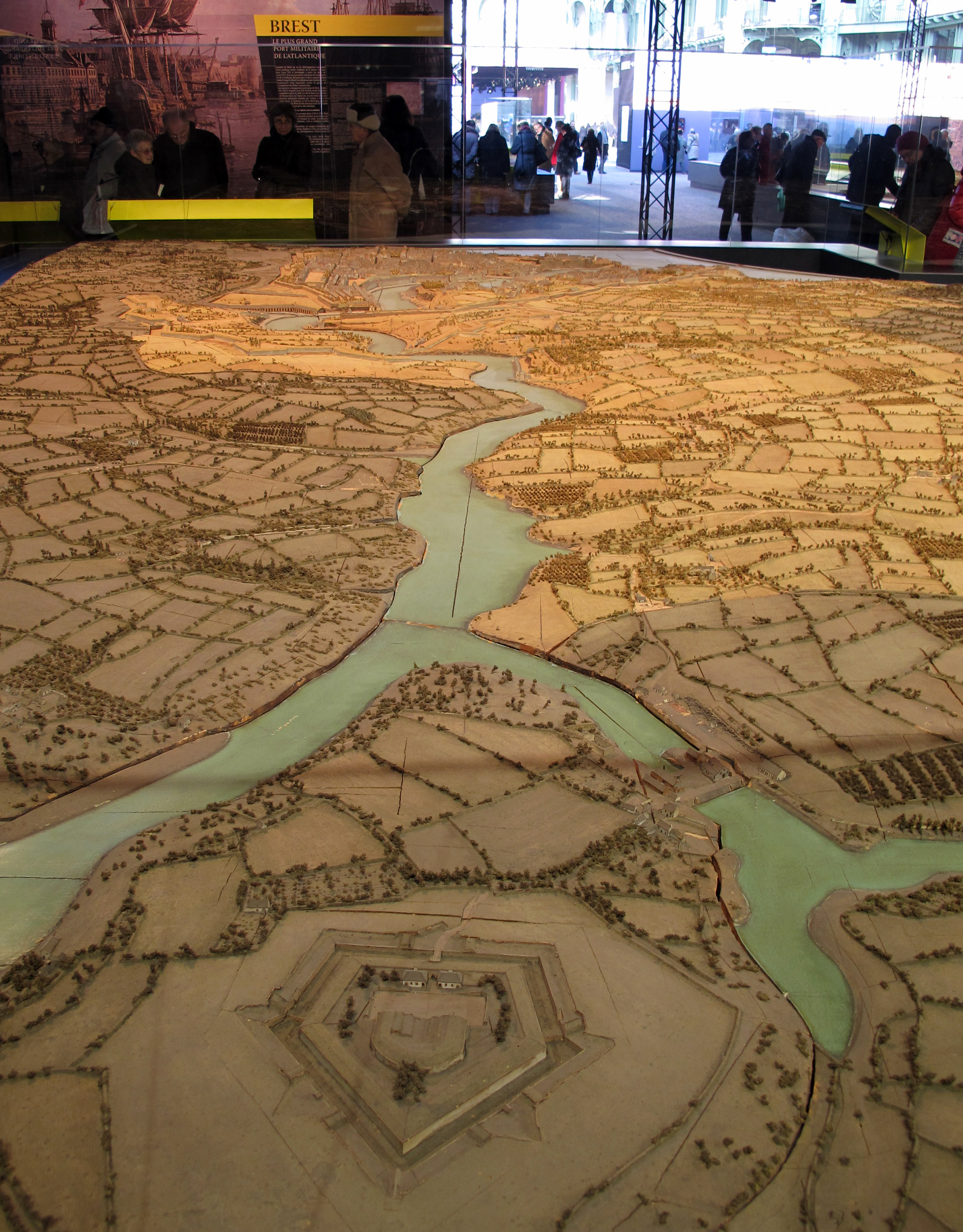 Vue de situation du Fort de Penfeld depuis le nord-ouest sur le plan-relief de Brest (1807-1811). En arrière-plan, la PenfeldImmatriculation