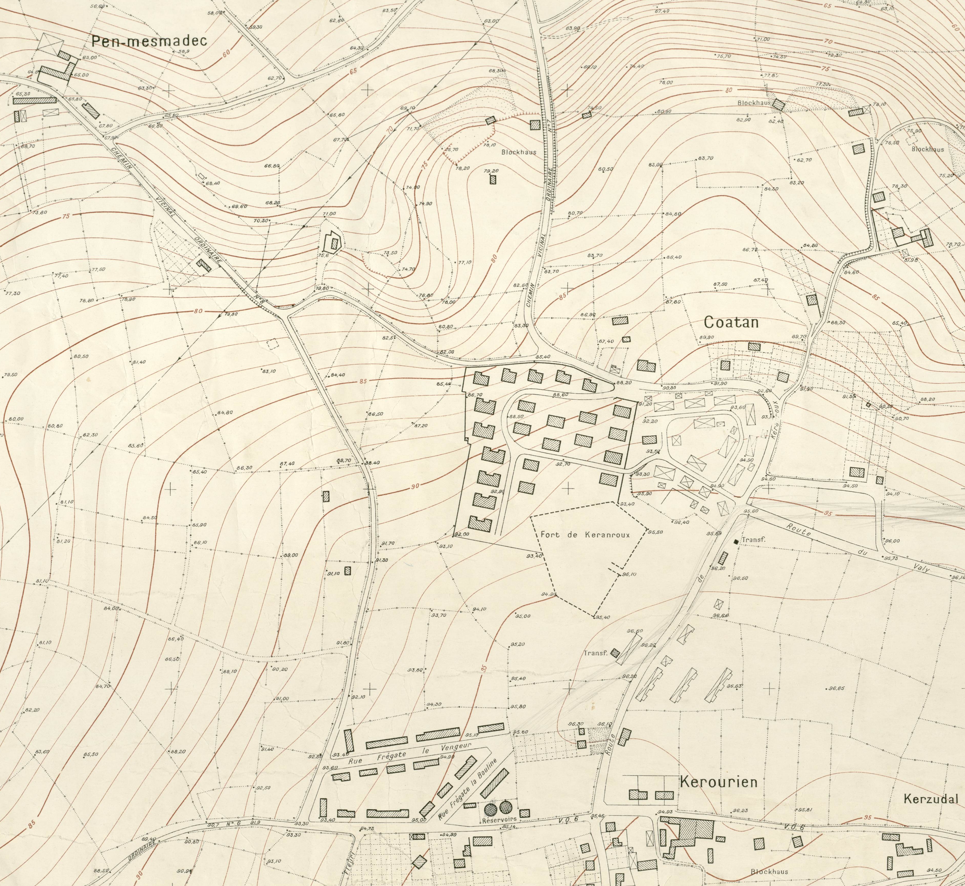 Extrait du plan topographique régulier de la ville de Brest : fort de Keranroux (feuille n° 11), secrétariat d'état à la reconstruction et au logement, 1946-1958 (Archives municipales et communautaires de Brest : 5Fi00889)Immatriculation