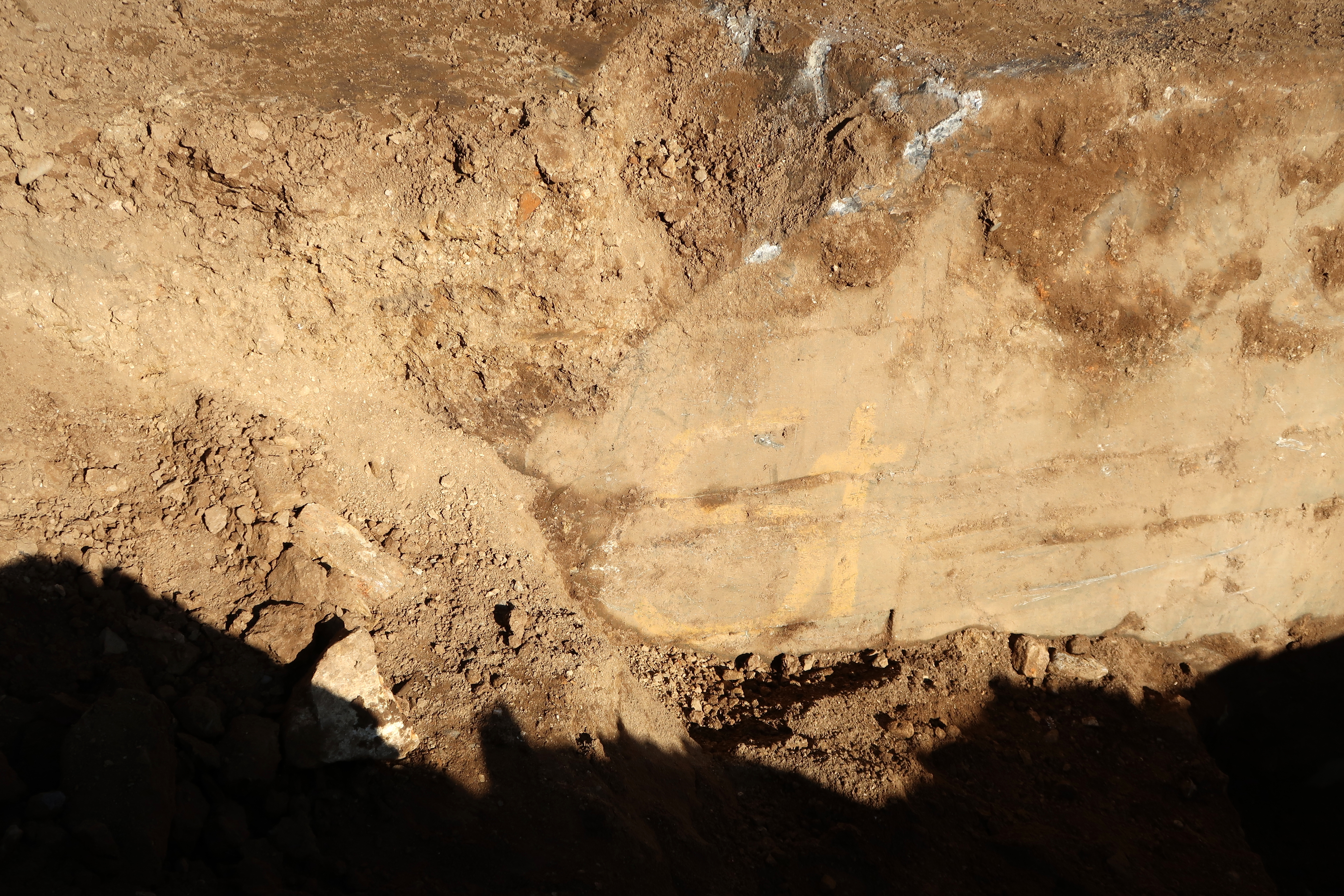 Vue du mur arrière orienté vers le sud : inscription "St", abréviation de "Ständig Ausbau", fortifications permanentes, c’est-à-dire à l’épreuve des bombes et étanche aux attaques au gazImmatriculation