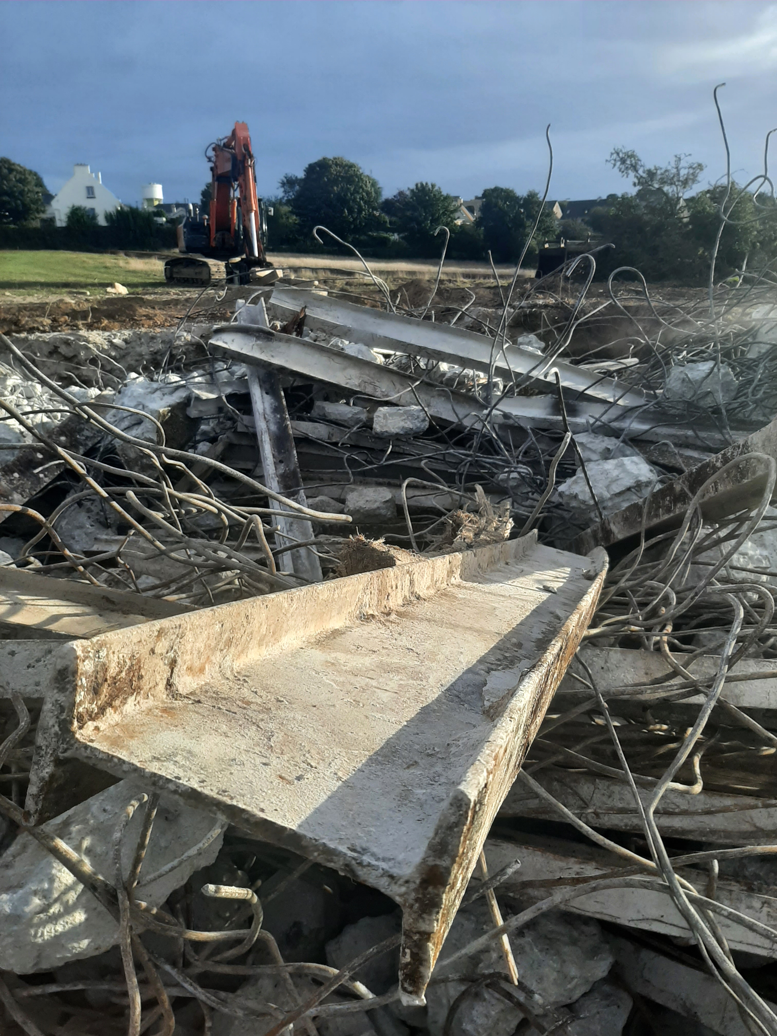 Vue de la déconstruction (26 septembre 2022). Au premier plan : poutre en acier en IImmatriculation