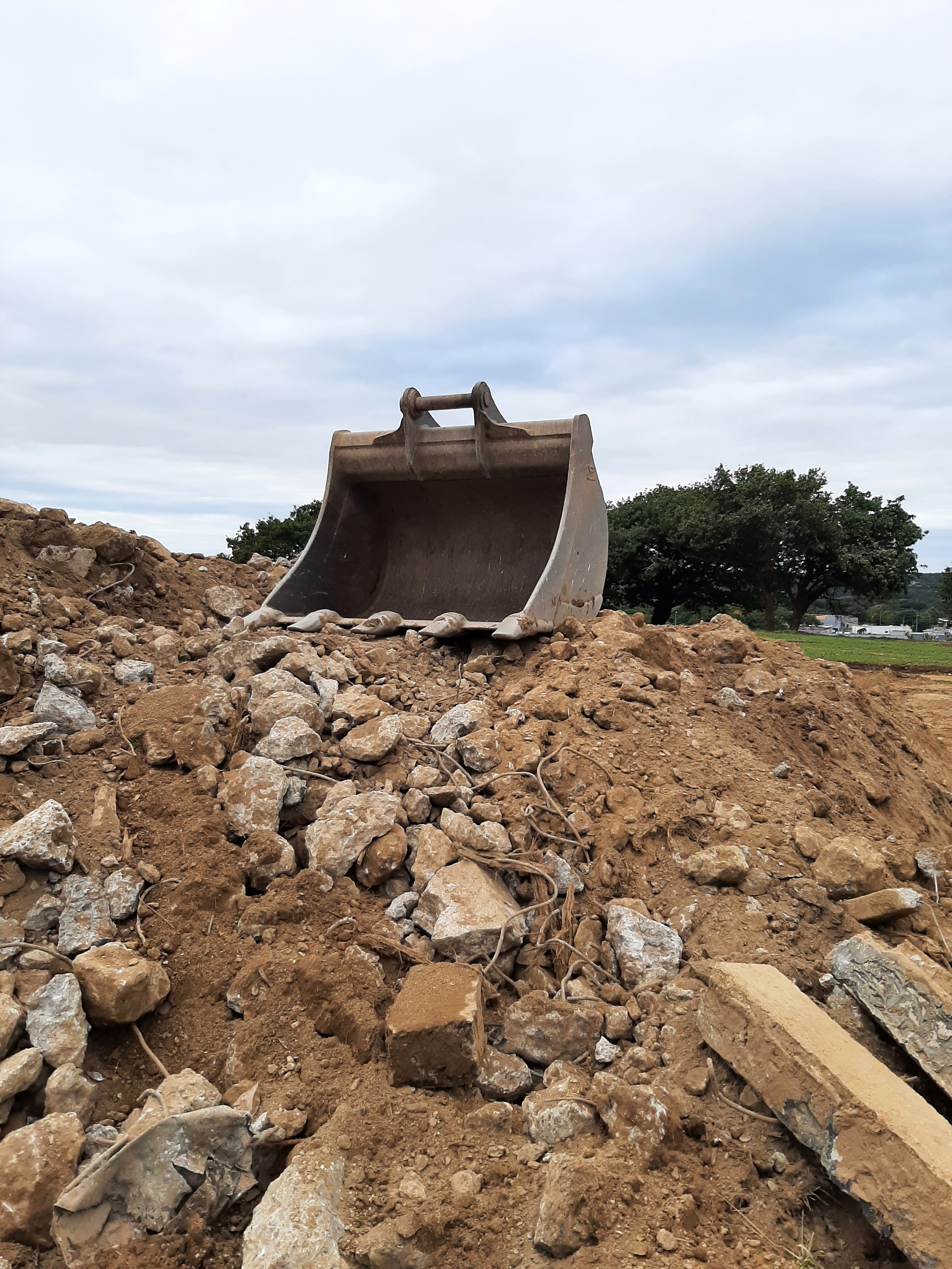 Vue de la déconstruction : godet utilisé par l'engin de terrassement (4 octobre 2022)Immatriculation
