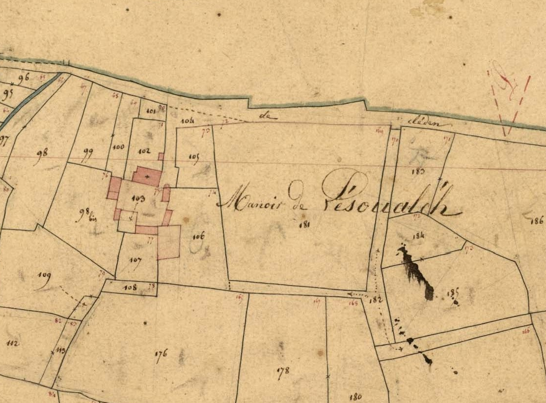 Extrait du cadastre de 1836 de la commune de Goulien.Immatriculation