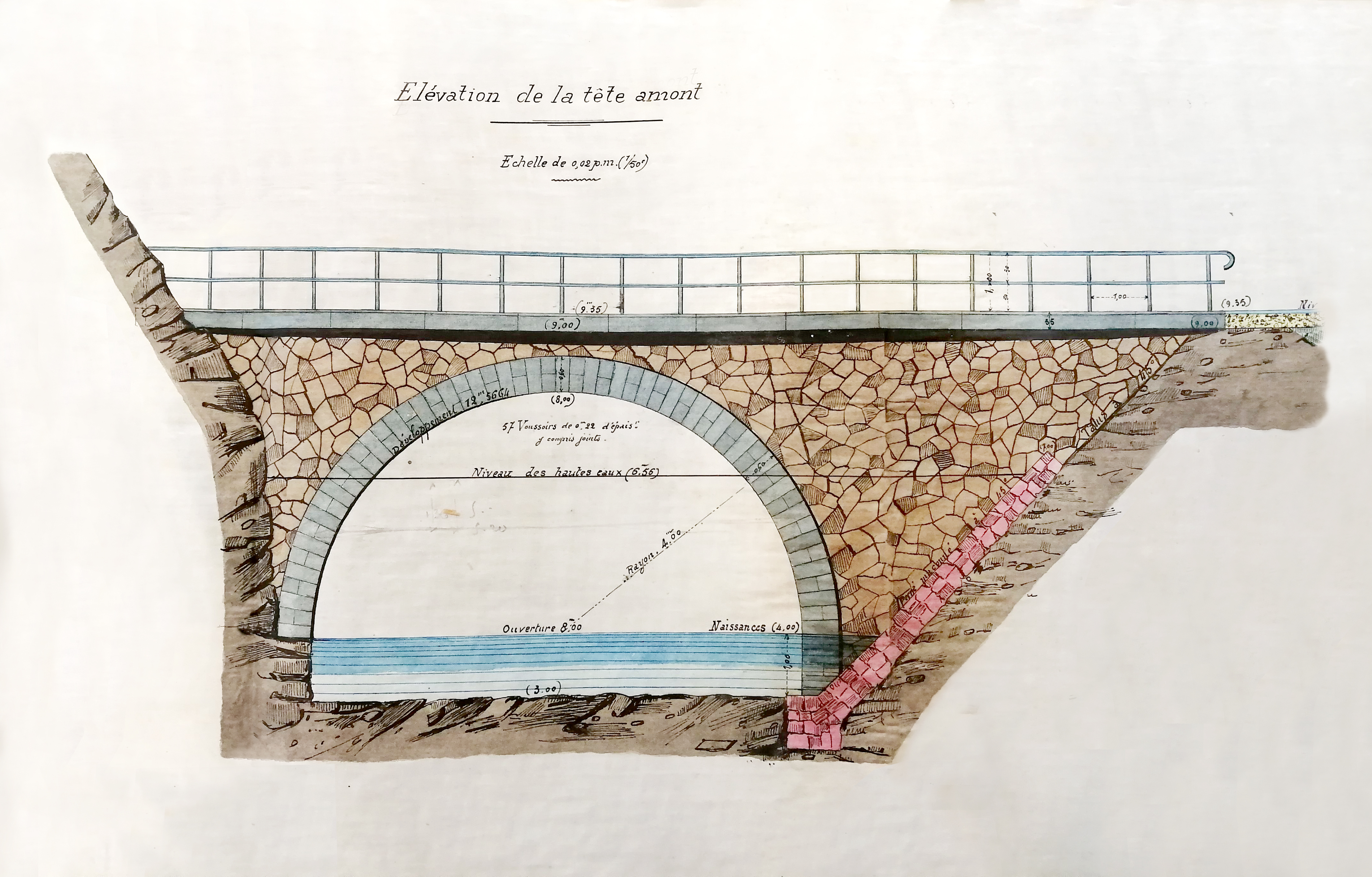Pont-Physique, élévation de la tête amont. Reproduction du projet d'exection du 1893.Immatriculation