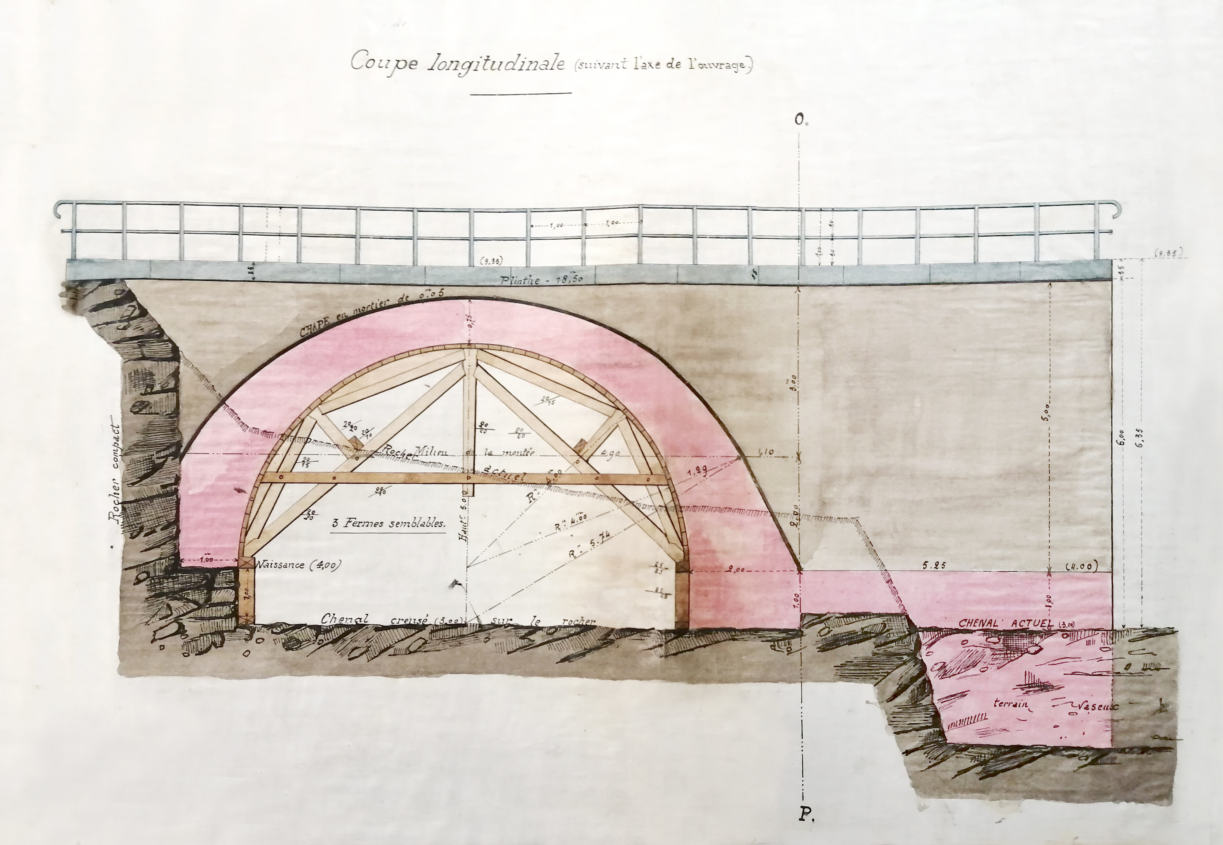 Pont-Physique, coupe longitudinale. Reproduction du projet d'exection du 1893.Immatriculation