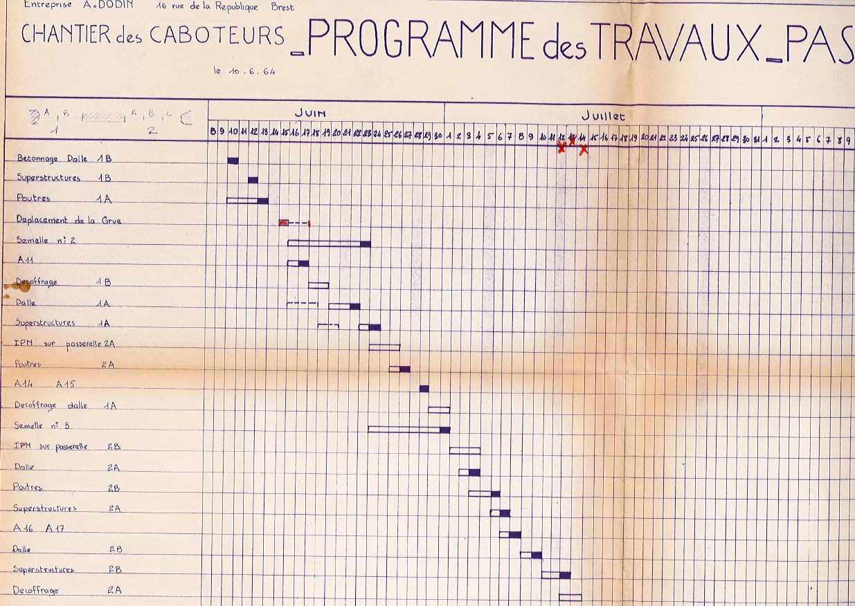 Programme des travaux du quai des caboteurs, du bétonnage au décoffrage (entreprise Dodin)Immatriculation