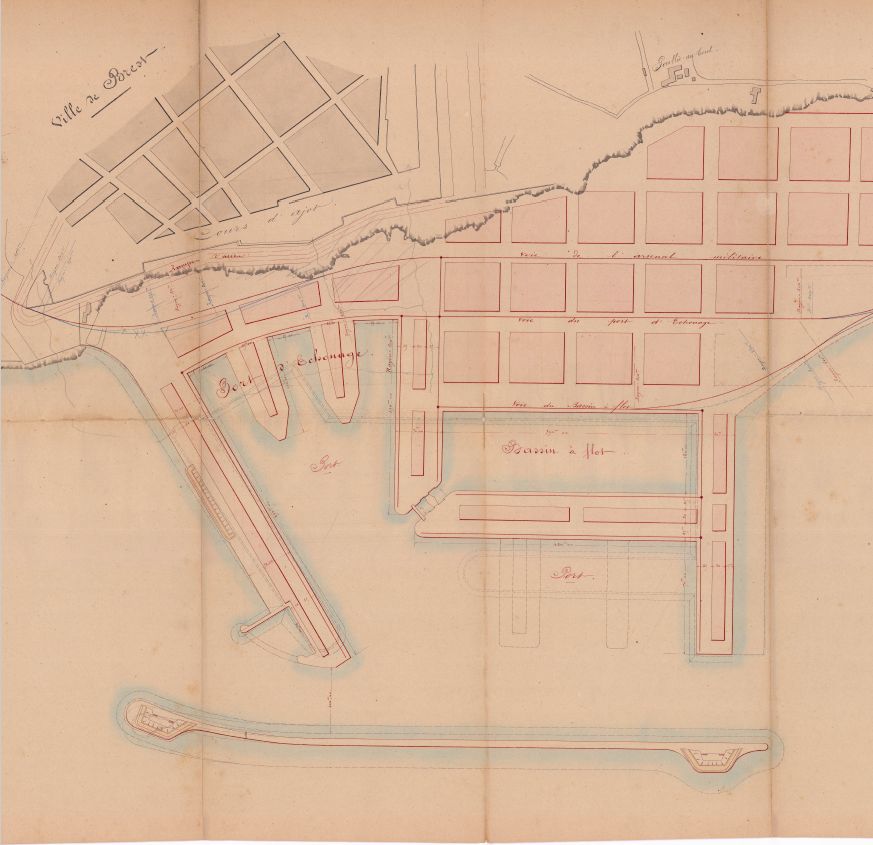 Plan général du projet port de commerce de Brest du 10 juillet 1861 dressé par l'ingénieur en chef du service maritime du Finistère (extrait)Immatriculation