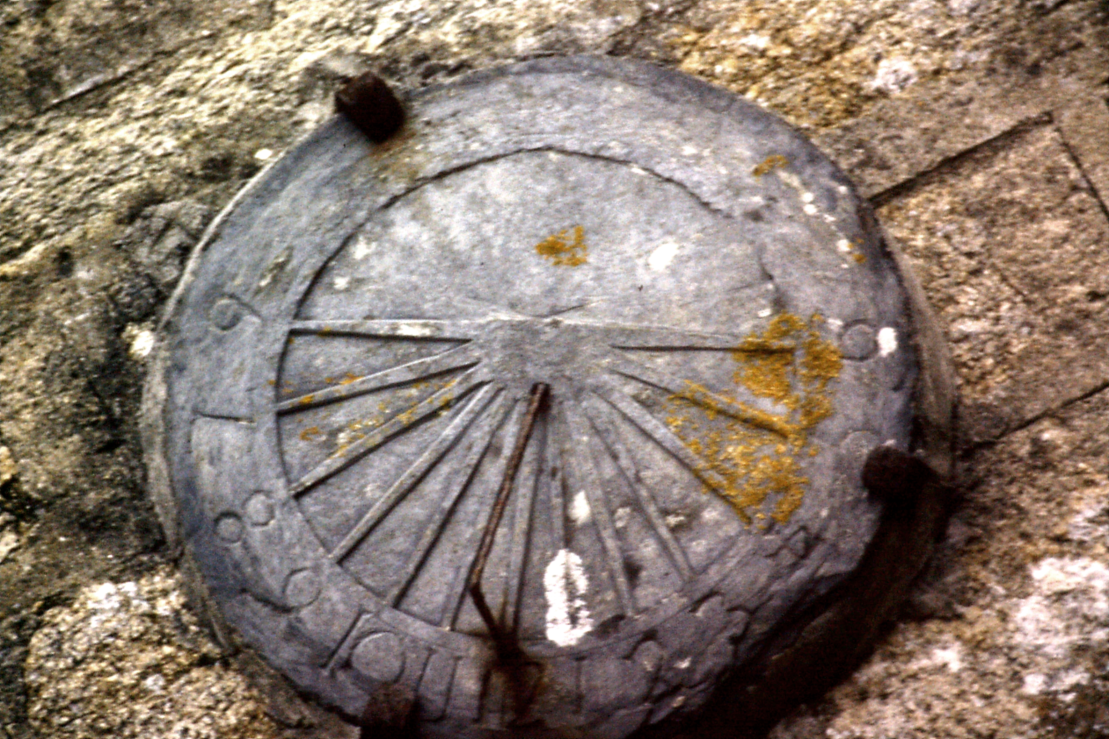 Plouhinec, manoir. Cadran solaire non daté sur la façade antérieure du logis. (2001)Immatriculation