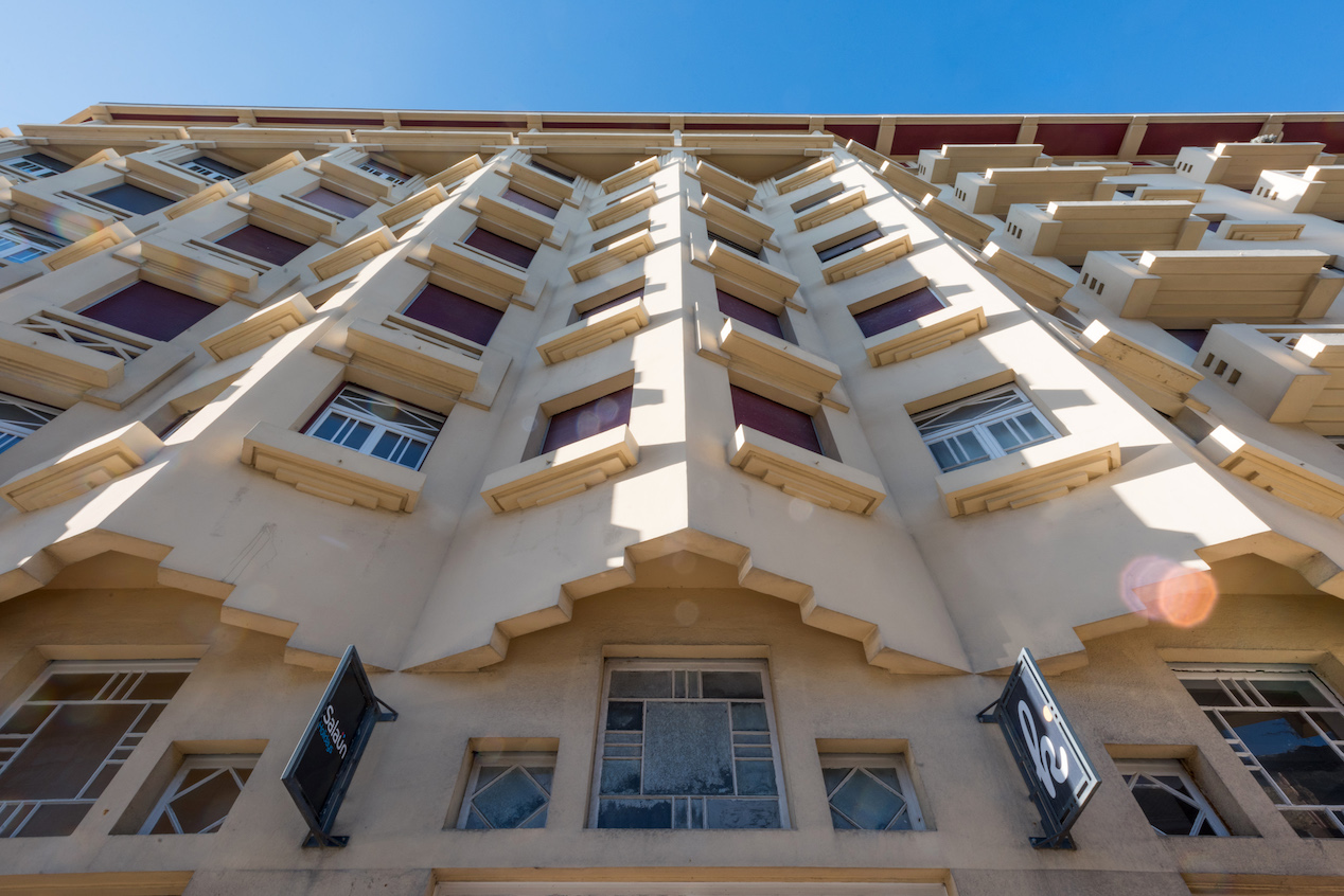 Détails de la façade est en contre-plongée (2022)Immatriculation