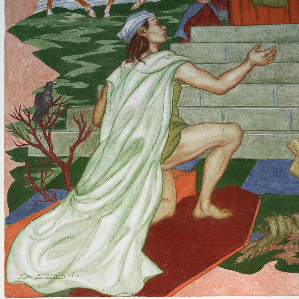Détail d'un personnage implorant, signature de l'artisteImmatriculation