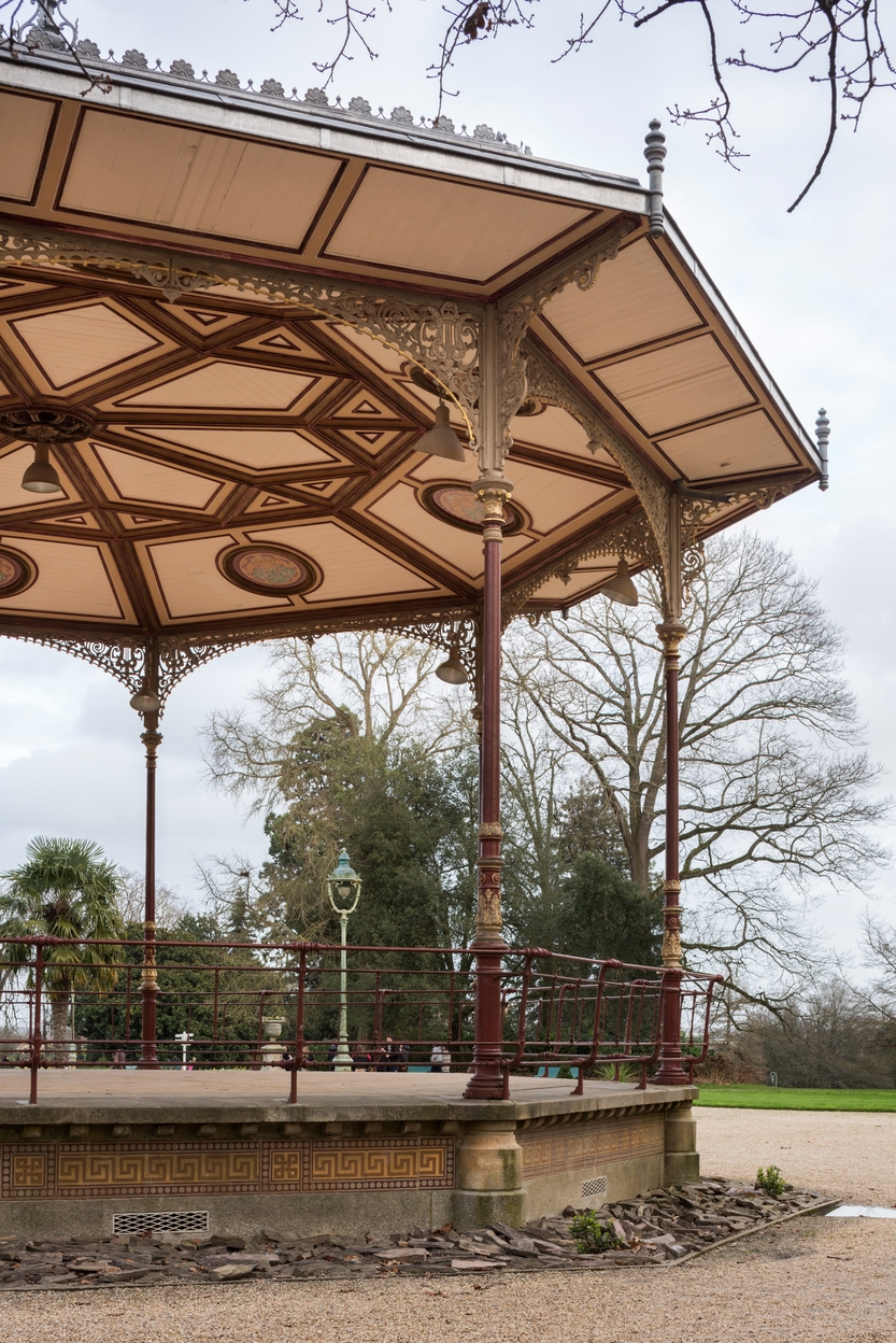 Vue partielle de l'édifice rénové à l'identique en 2011, conservant ses huit faces de quatre mètres de diamètre, sa couverture métallique, ses ardoises de zinc et sa charpente en boisImmatriculation