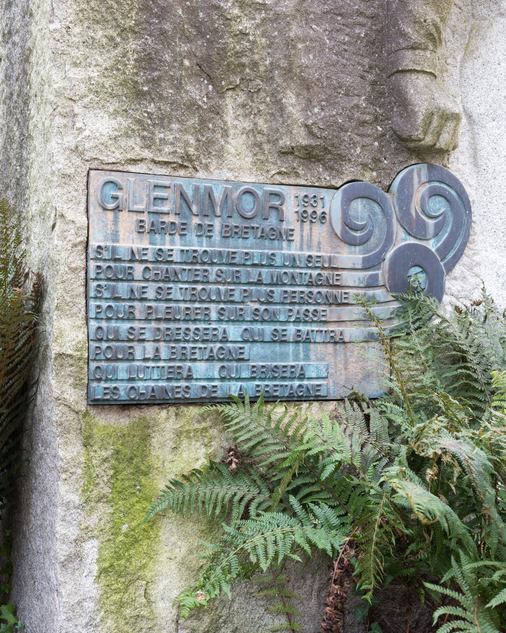 Statue : Glenmor (détail de la plaque commémorative)Immatriculation