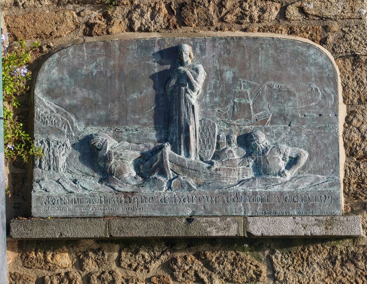 Plaque commémorative du débarquement de Jean IV en 1379 par Armel Beaufils, vue d'ensembleImmatriculation