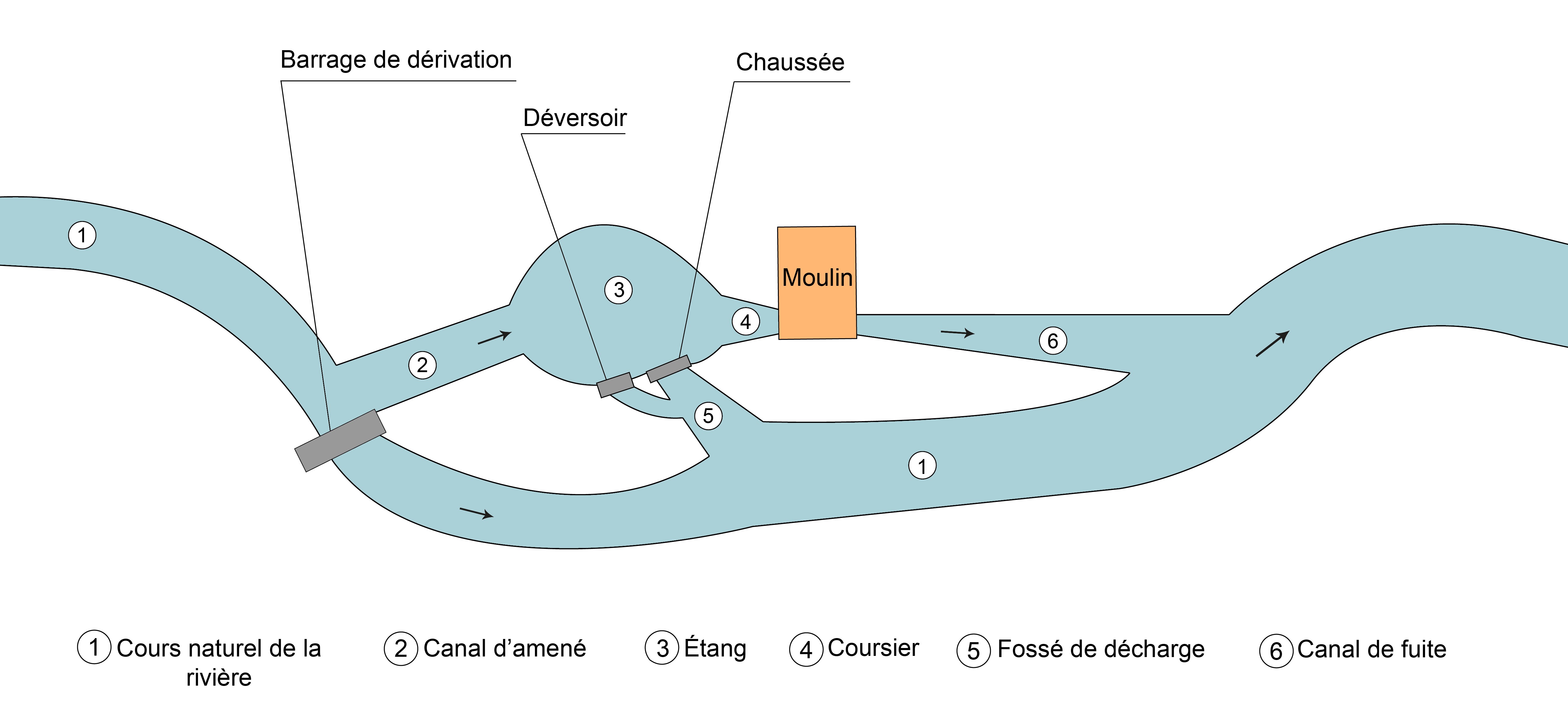 Emplacement des infrastructures hydrauliques types d’un moulin à eau (schéma)Immatriculation