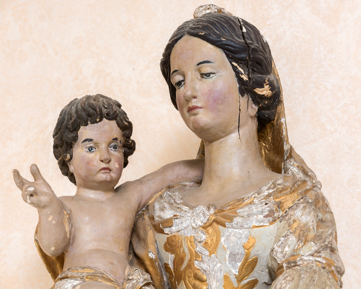 Statue : Vierge à l'Enfant, vue à mi-corps (état en 2022)Immatriculation