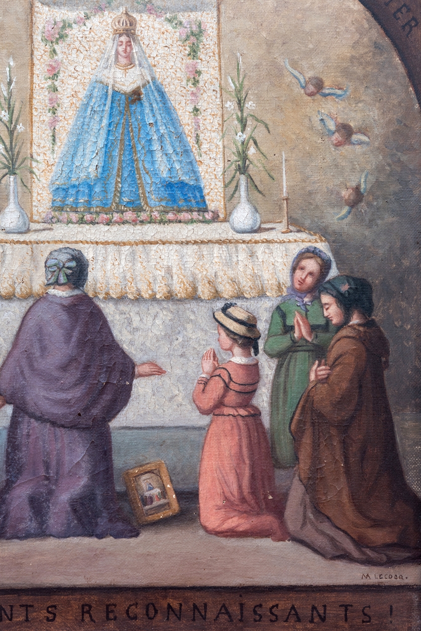 Tableau ex-voto : fidèles en prière devant Notre-Dame du Roncier, basilique Notre-Dame-du-Roncier (Josselin),