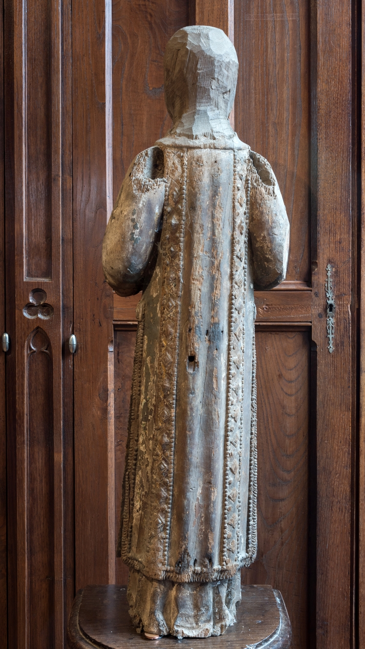 Vue du revers de la statue-reliquaire de saint Etienne : le crâne et la nuque sont simplement épannelésImmatriculation