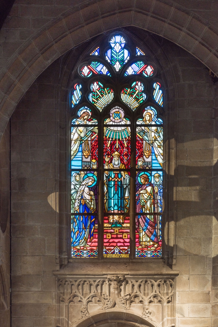 Verrière réalisée en 1932 au moment de la transformation de l'espace anciennement occupé par la tour en deux chapelles latérales.Immatriculation