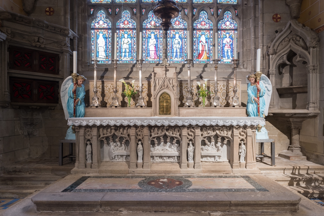 Ensemble du maître-autel : autel, tabernacle, gradin d'autel, basilique Notre-Dame-du-Roncier (Josselin),