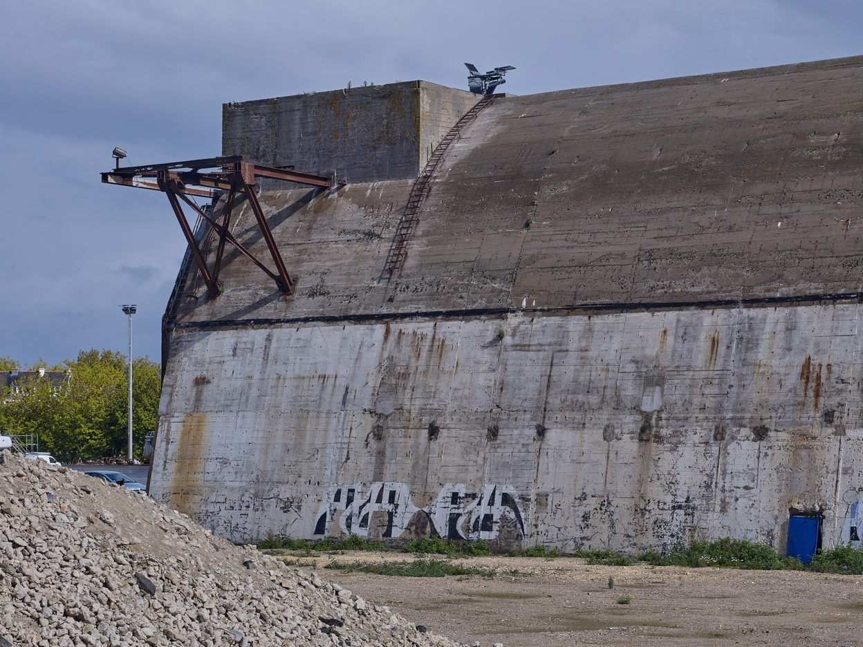 Dom-bunker Ouest dit "T6" avec encuvement pour canon antiaérien puis usine de construction navale, aire de réparation navale, port de pêche de Keroman (Lorient),