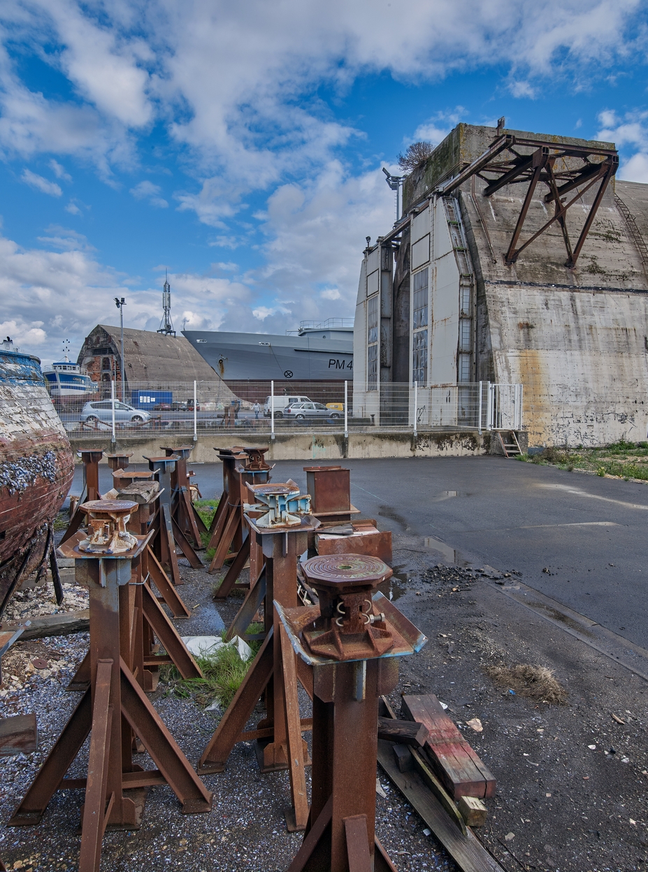 Dom-bunker Ouest dit "T6" avec encuvement pour canon antiaérien puis usine de construction navale, aire de réparation navale, port de pêche de Keroman (Lorient),