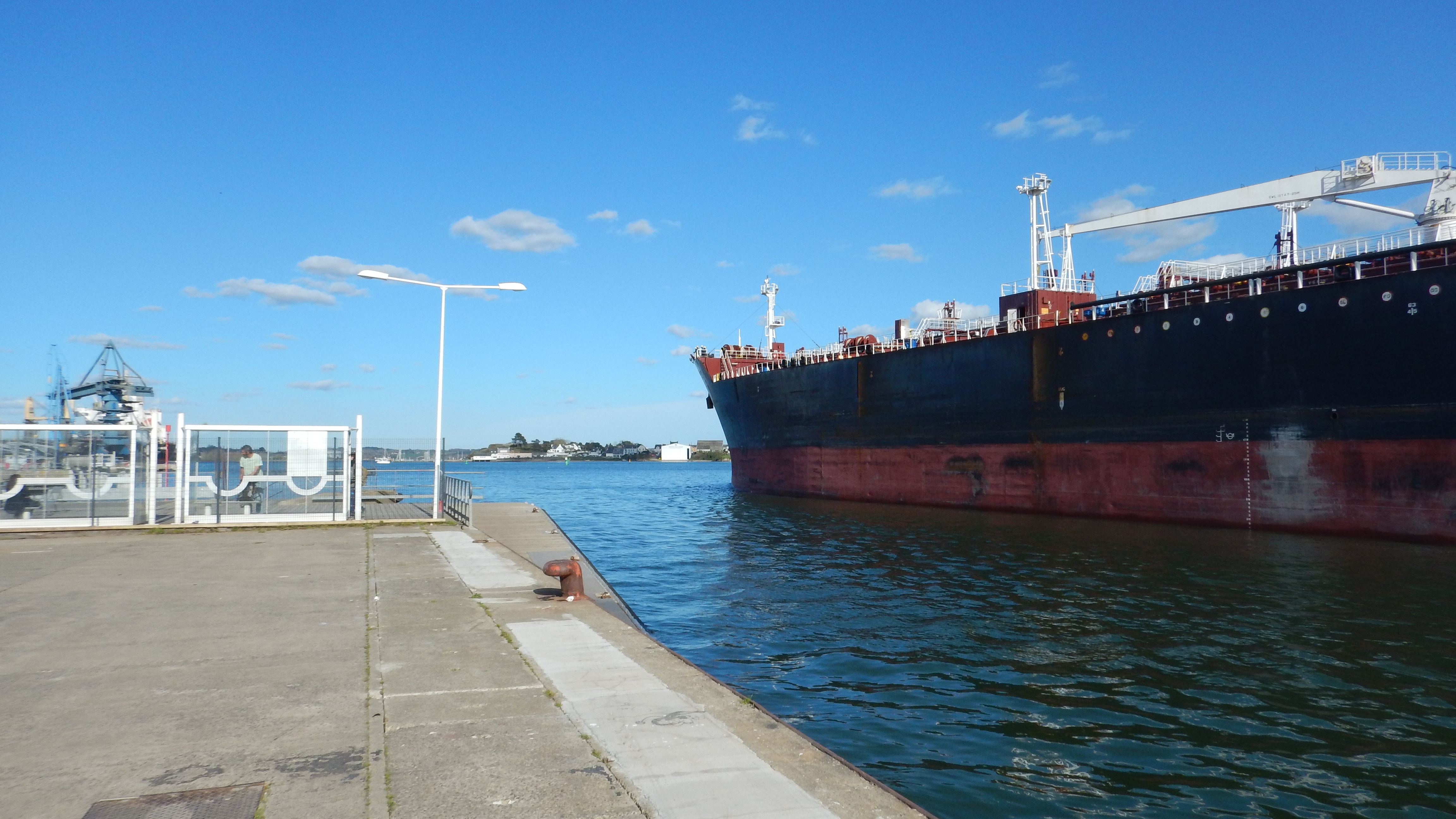 Vue sur un cargo depuis l'embarcadèreImmatriculation