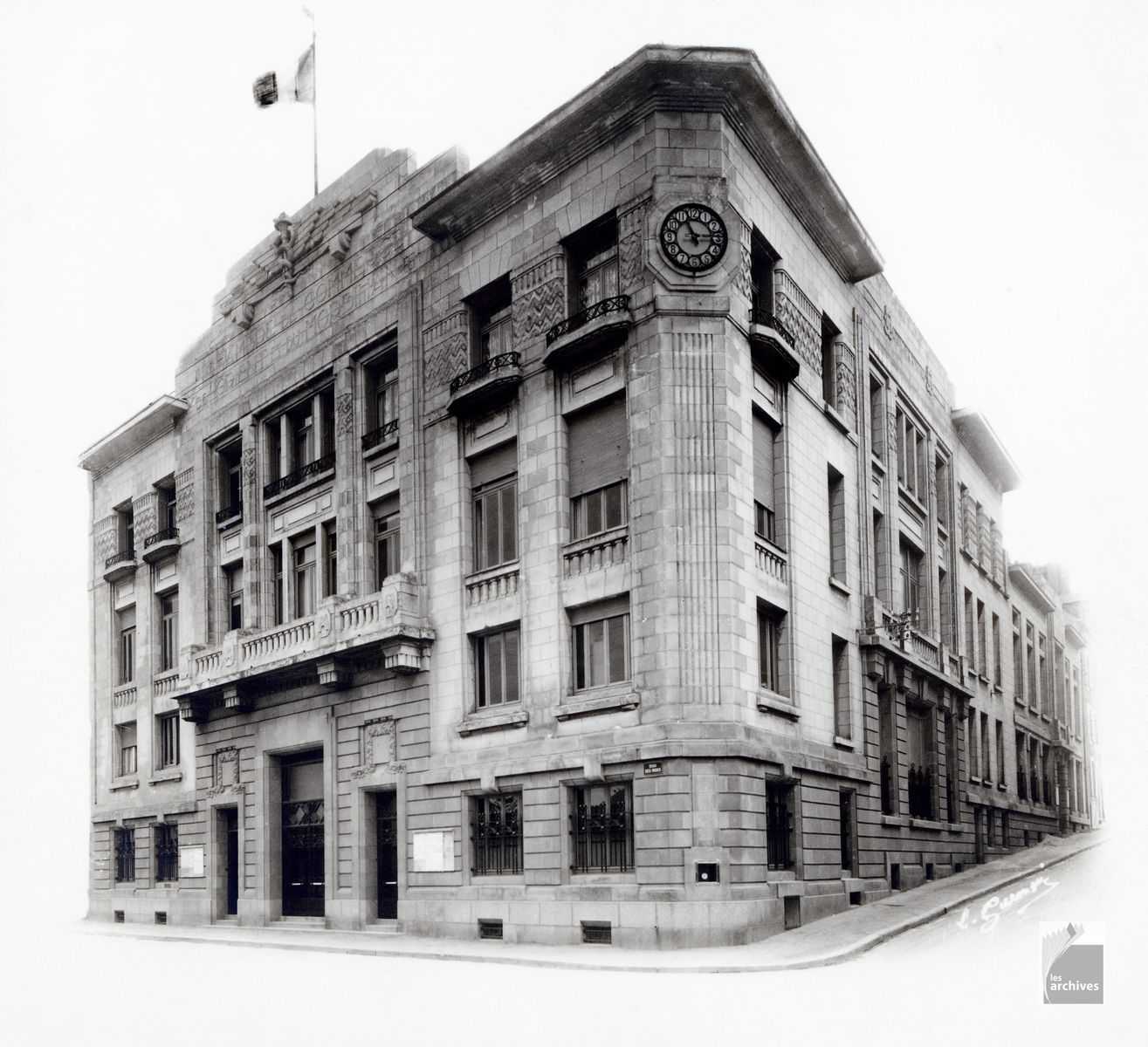 Angle du bâtiment avec son horloge (1950-1959)Immatriculation