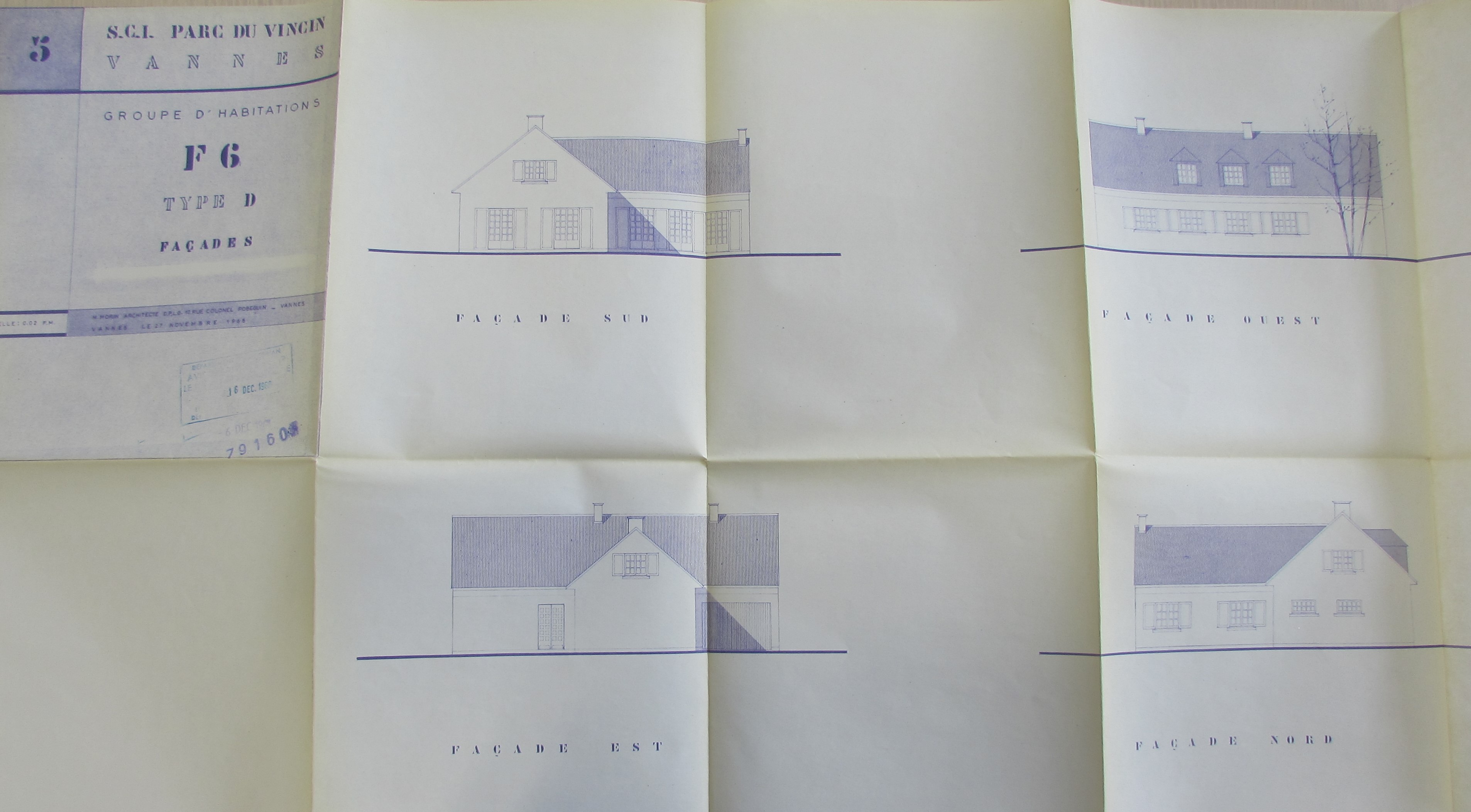 Façades, maison F6 type D, 1968 par M. Morin. AM Vannes 35 W 3867.Immatriculation