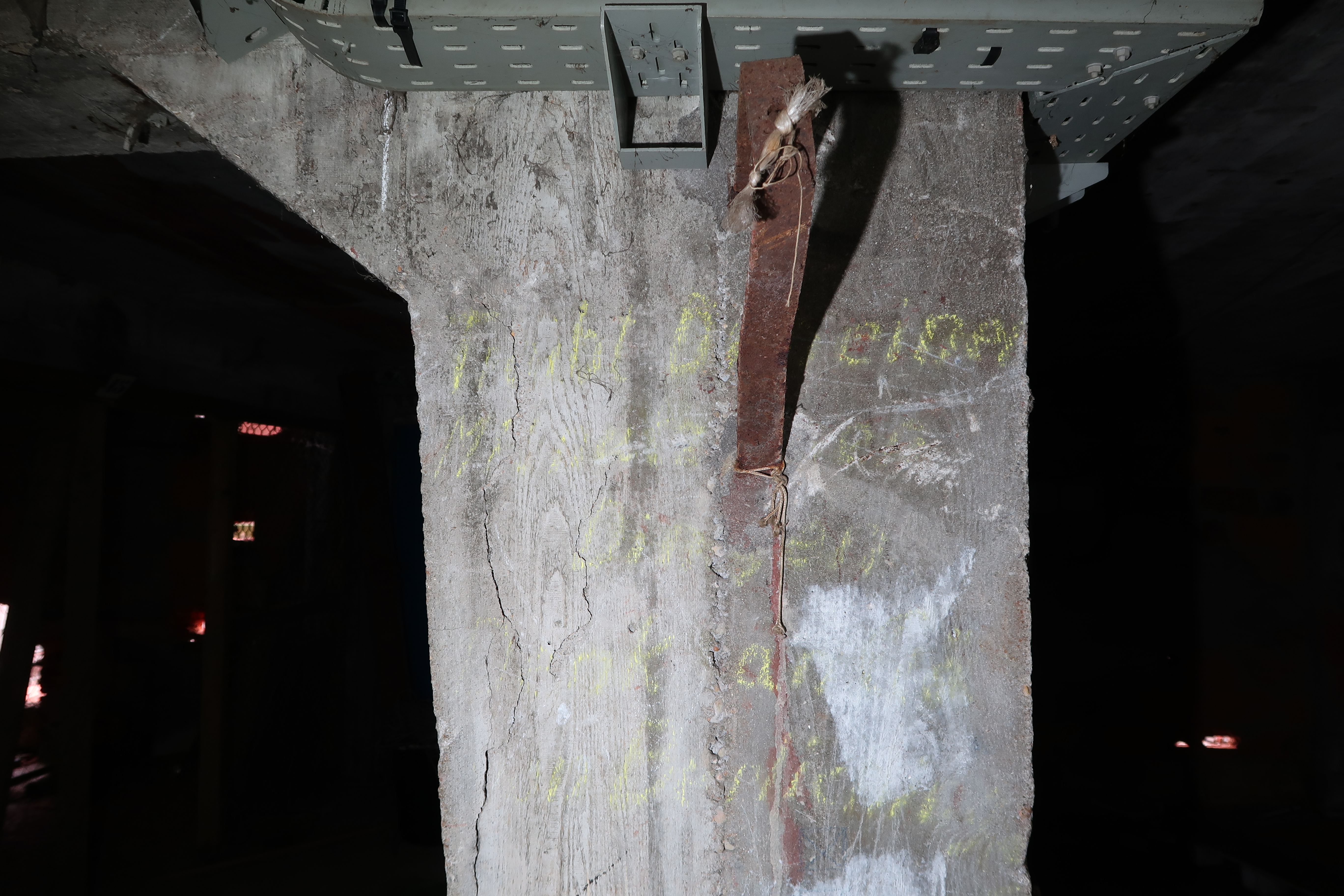 Rez-de-chaussée : extrémité nord. Sur le pilier droit, inscription à la craieImmatriculation