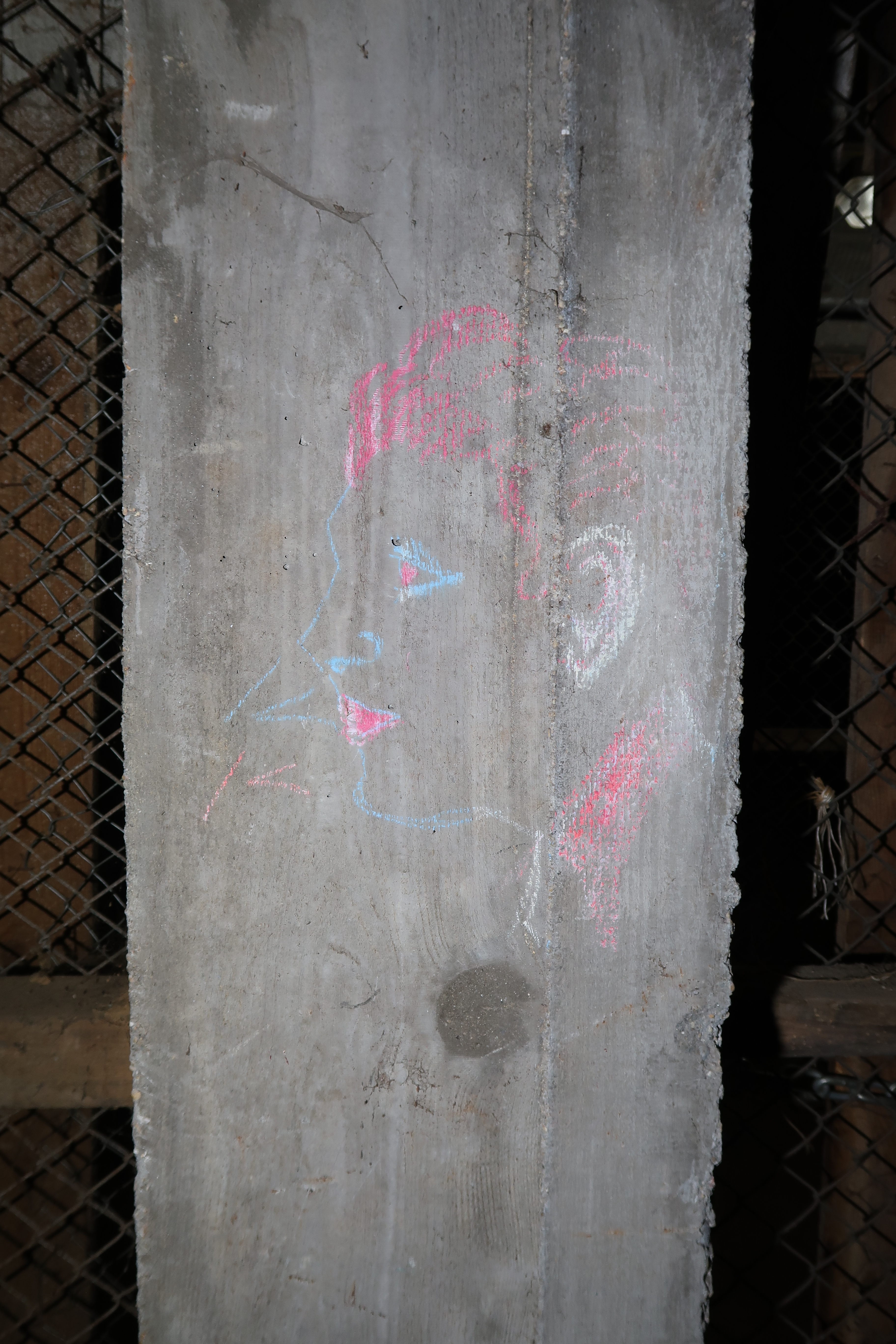 Rez-de-chaussée : portrait à la craie sur l'un des piliersImmatriculation